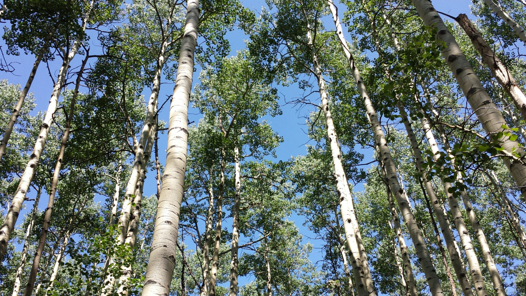 More aspens along the descent to the pass, all of them looking much cheerier than their brethren a few days ago. They murmur politely amongst themselves as I pass through.