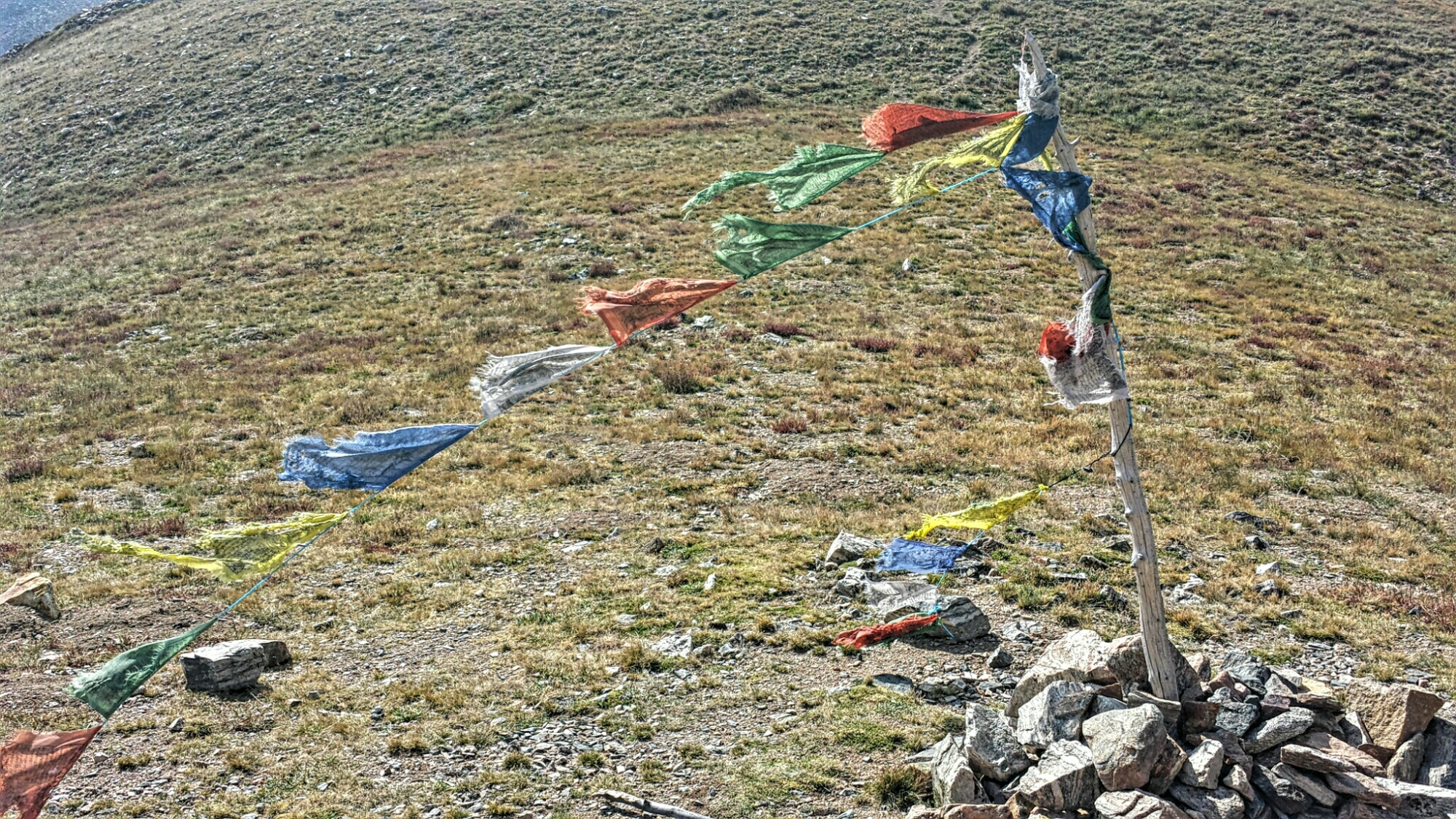 Finally, we make it to the top, see the prayer flags someone’s left up there. It looks, seems, feels weird, out of context, for them to be up there, and I wonder who put them there and why.