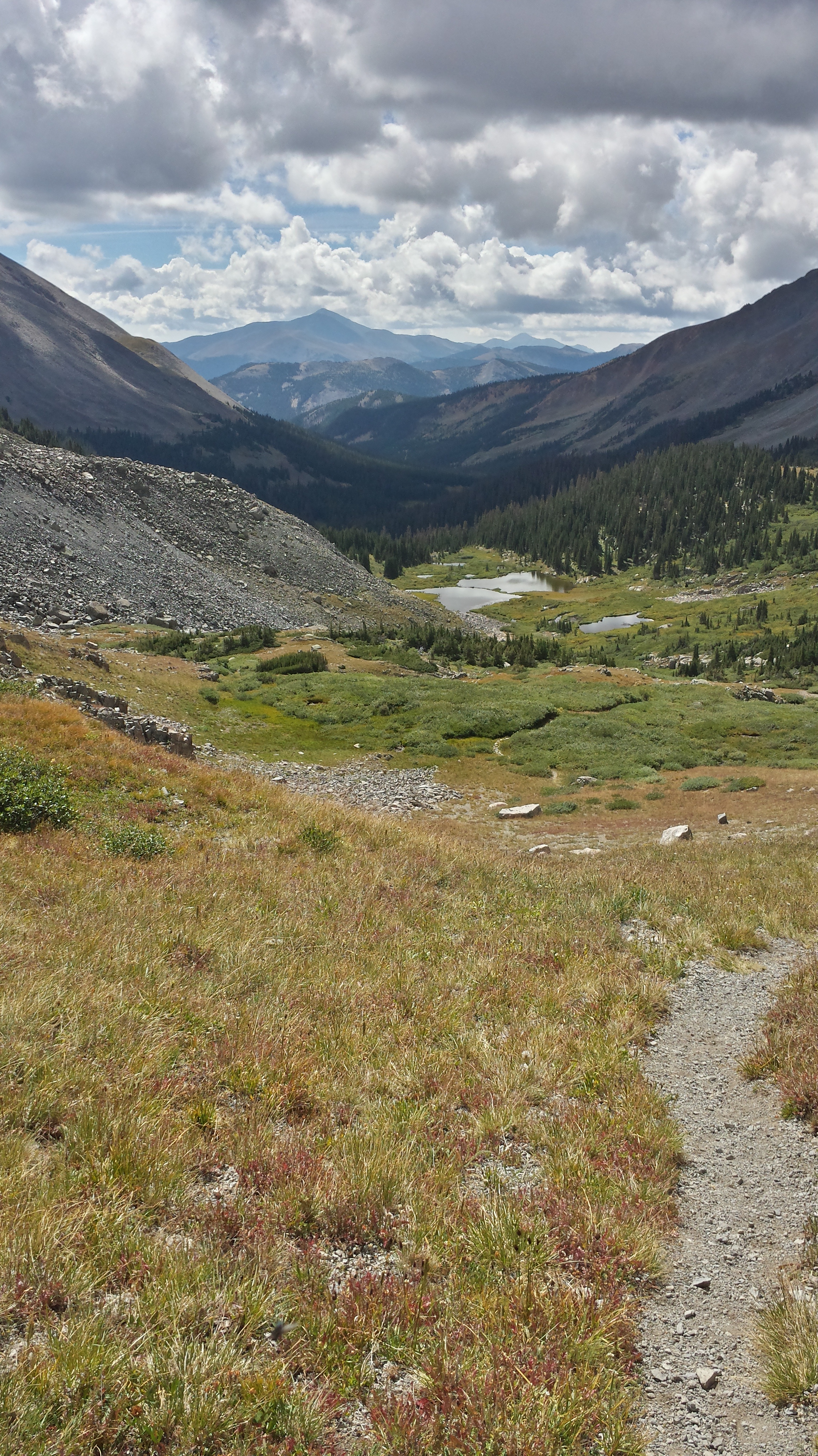We quickly pass the spot where the Colorado Trail Foundation is working to get the trail off the jeep road, further up the side of the hill. Today, I’m glad we don’t have to climb it; it’s hard to consistently concentrate on carefully placing each step, and on the steps that I misplace, there’s a slow burn that starts to bloom in my injured foot. We make it up to Hancock Lake relatively without incident, pass a bunch of would-be-fisherman on a quest to learn the craft on our way up to Chalk Creek Pass.