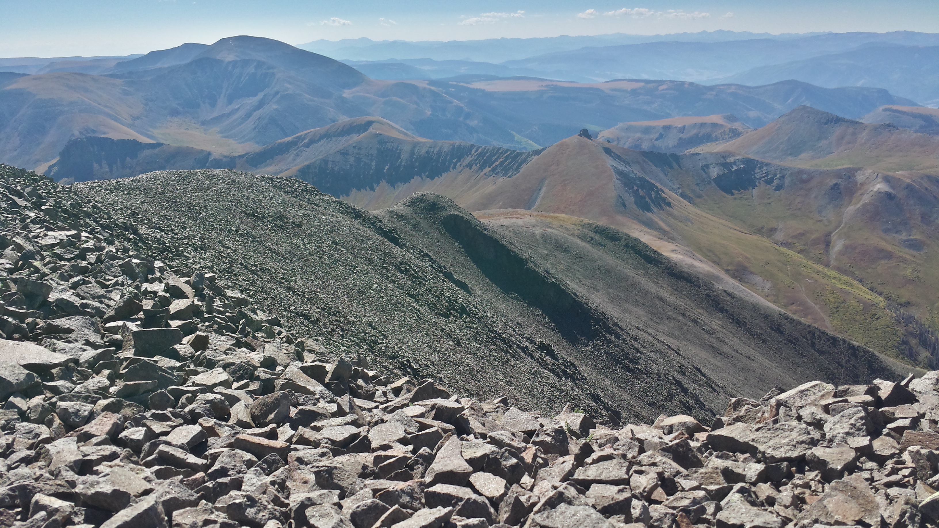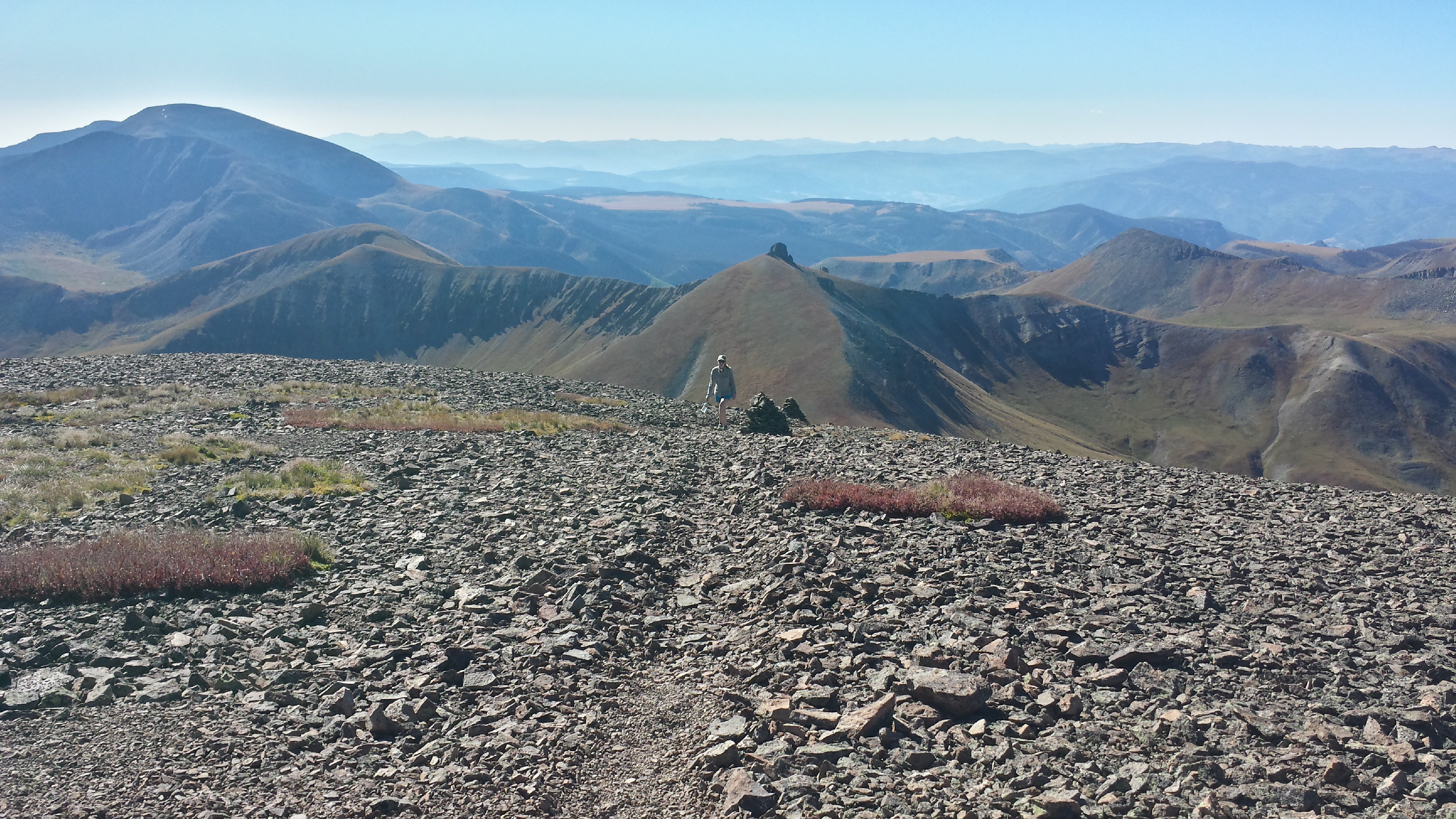 The CDTers – MeHap, Grim, and NomNom – all plan to make it into Lake City tonight, and Crank is just aching to get into town, so she flies off with them. NoDay’s faster than me, but I catch her at the top of the next saddle – there’s cell service up here, and she’s instabooking and facegramming and and and. I join her for a bit, before moving on along, knowing she’ll catch me before long.