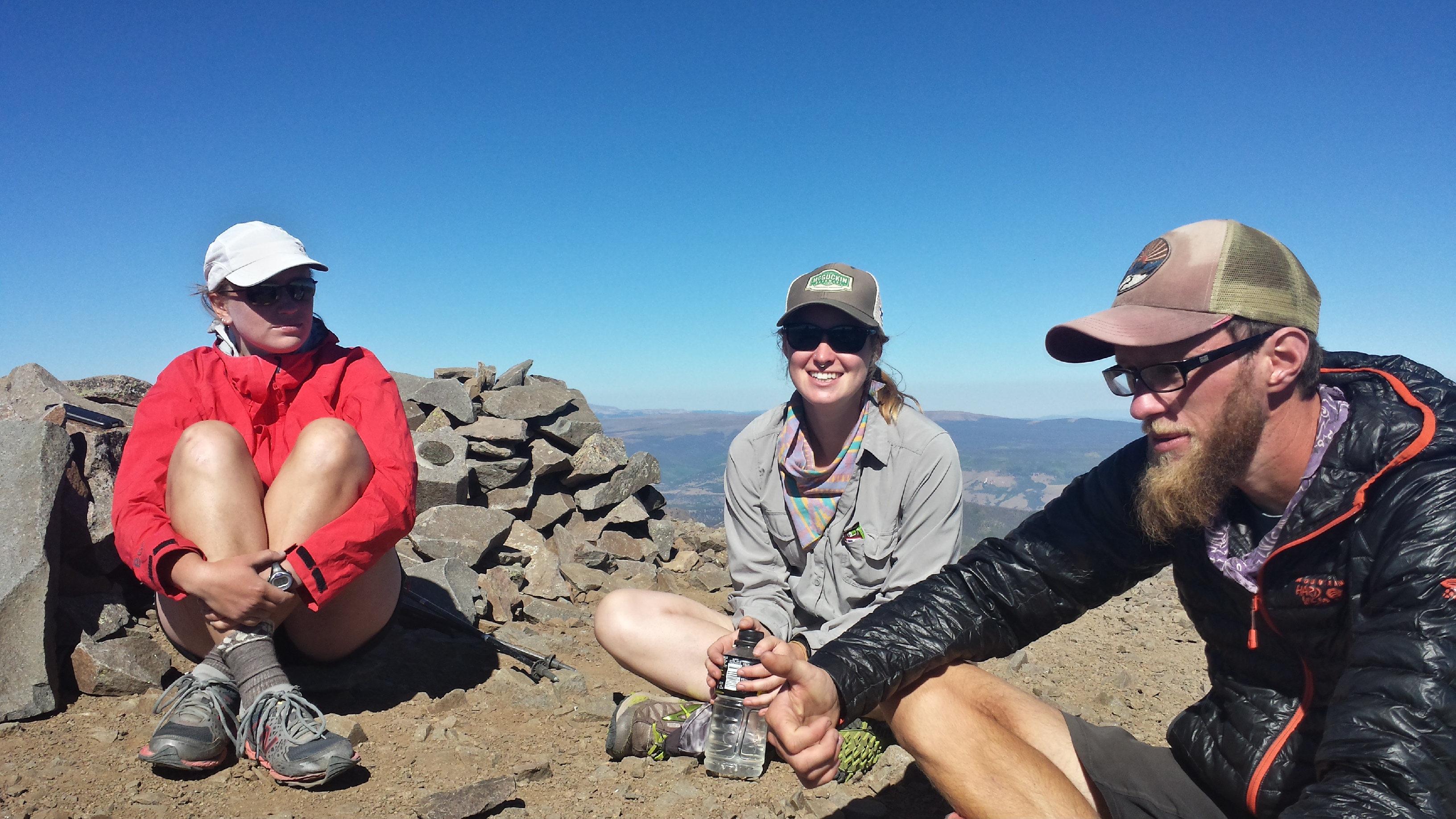 Pictured: Hikers who also hiked up a mountain, and who are (left to right) cold, pretty happy to be up here, and a combination of both those things.