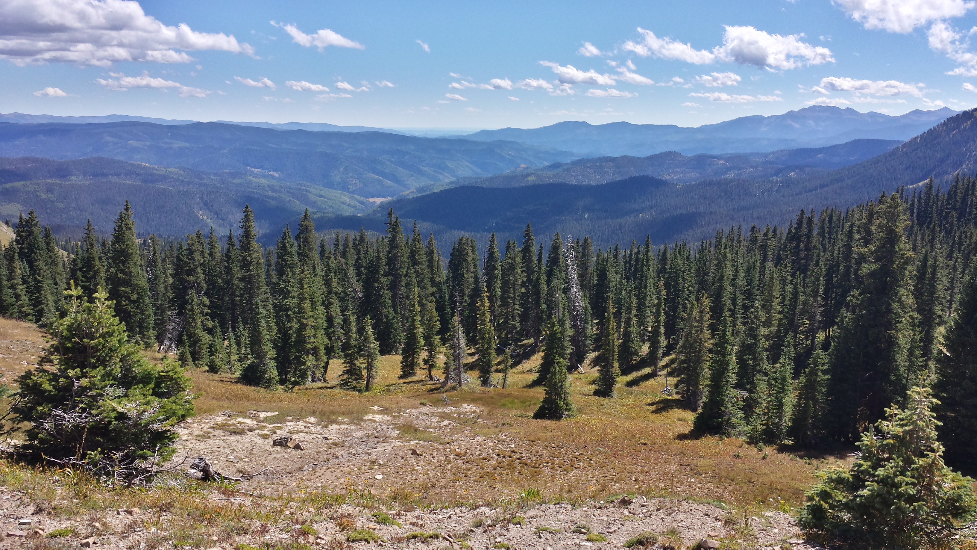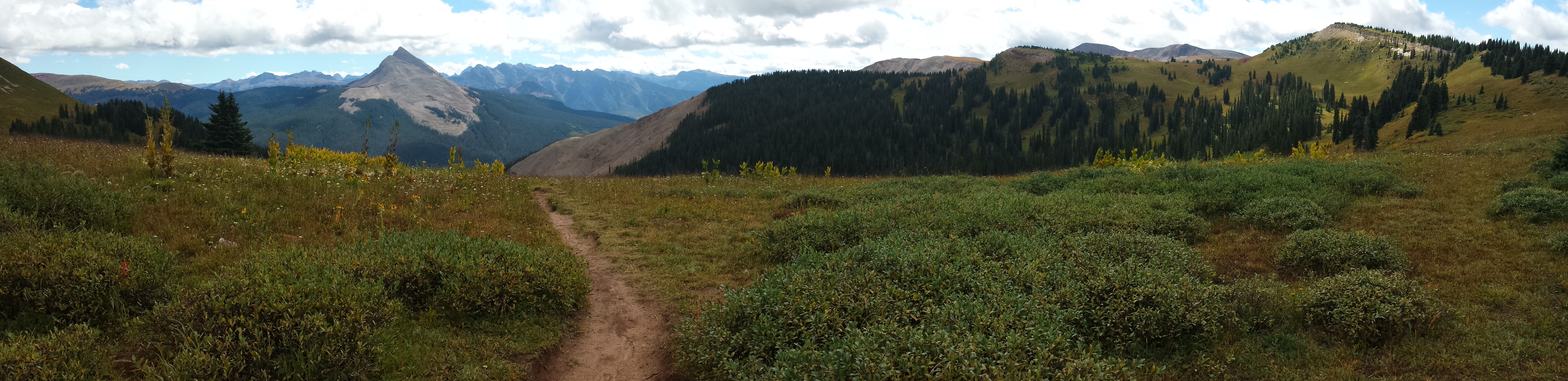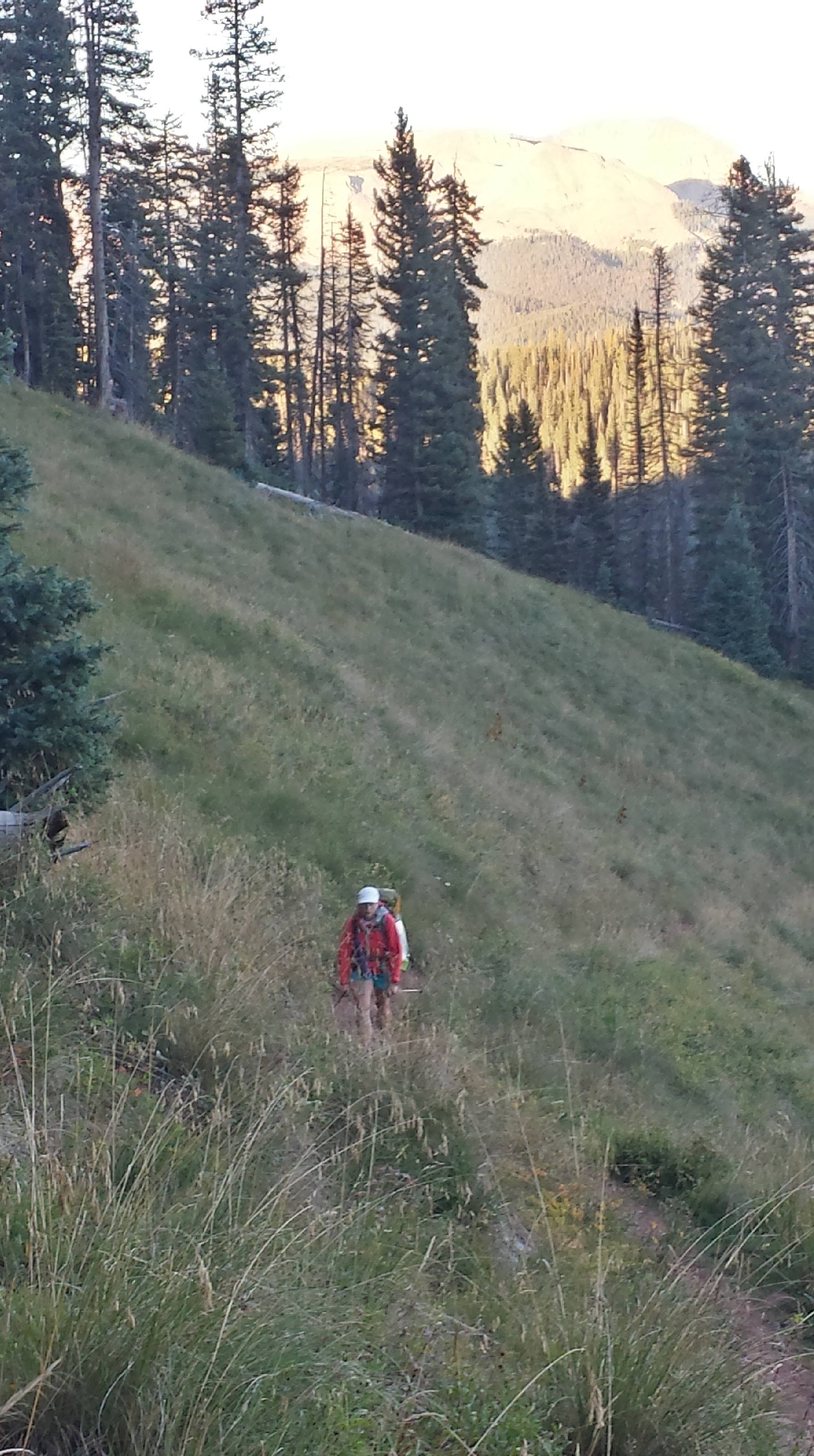 We cross paths with a hiker from LA, who started the trail in Durango recently. Most people, from sea level or no, start in Denver, mostly because the trail quickly jumps from the 9000-foot Durango start to 12,000-ish feet, and then stays there for a significant portion of the trail beyond. I wouldn’t want to acclimate to altitude that way, but he seems to be in good spirits, telling us to watch for his sister somewhere behind us. We see her about a quarter of a mile behind him, clearly on struggle street. I wonder if she’s having a good time. I wonder if I looked like that earlier on the trail.