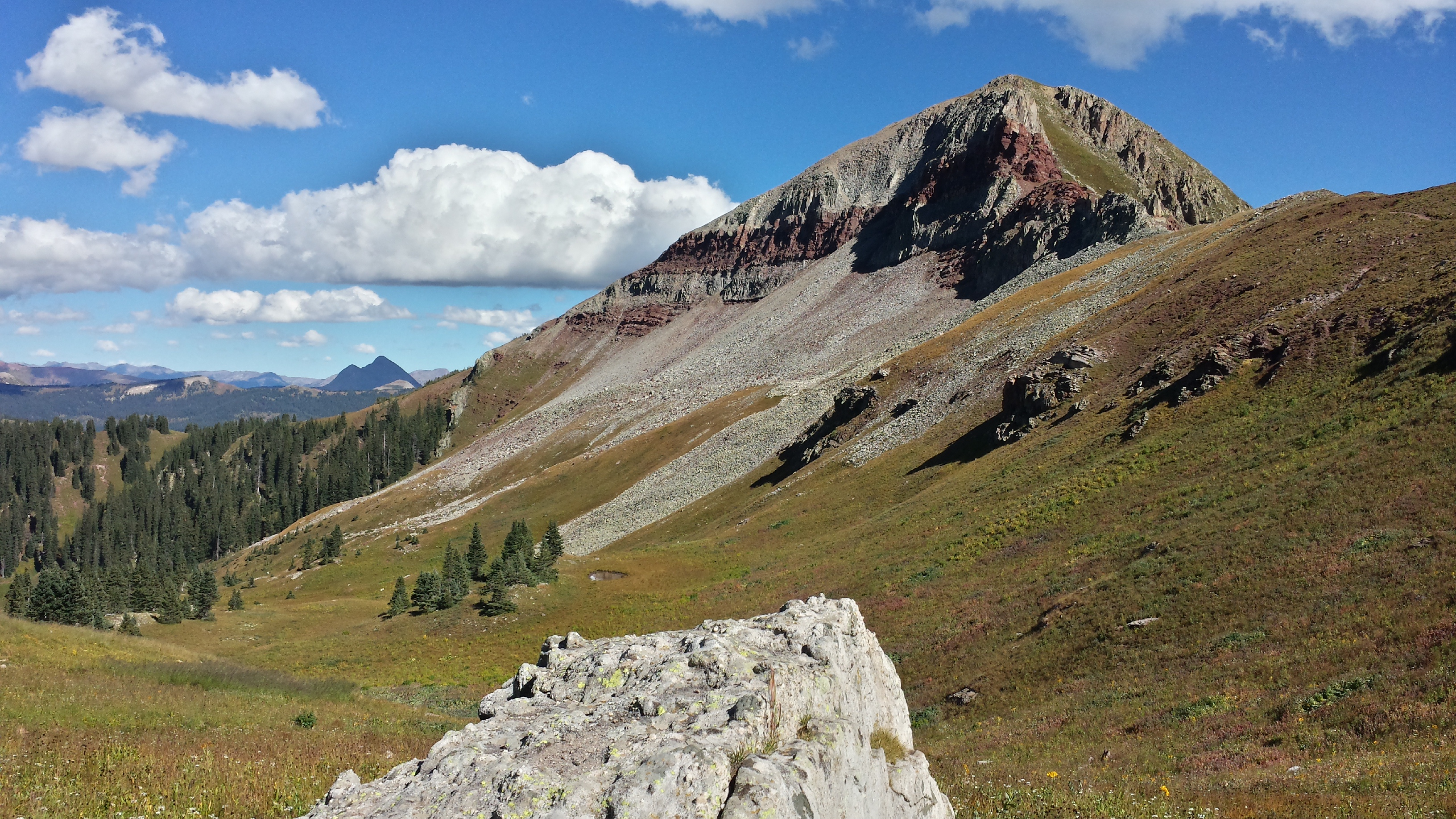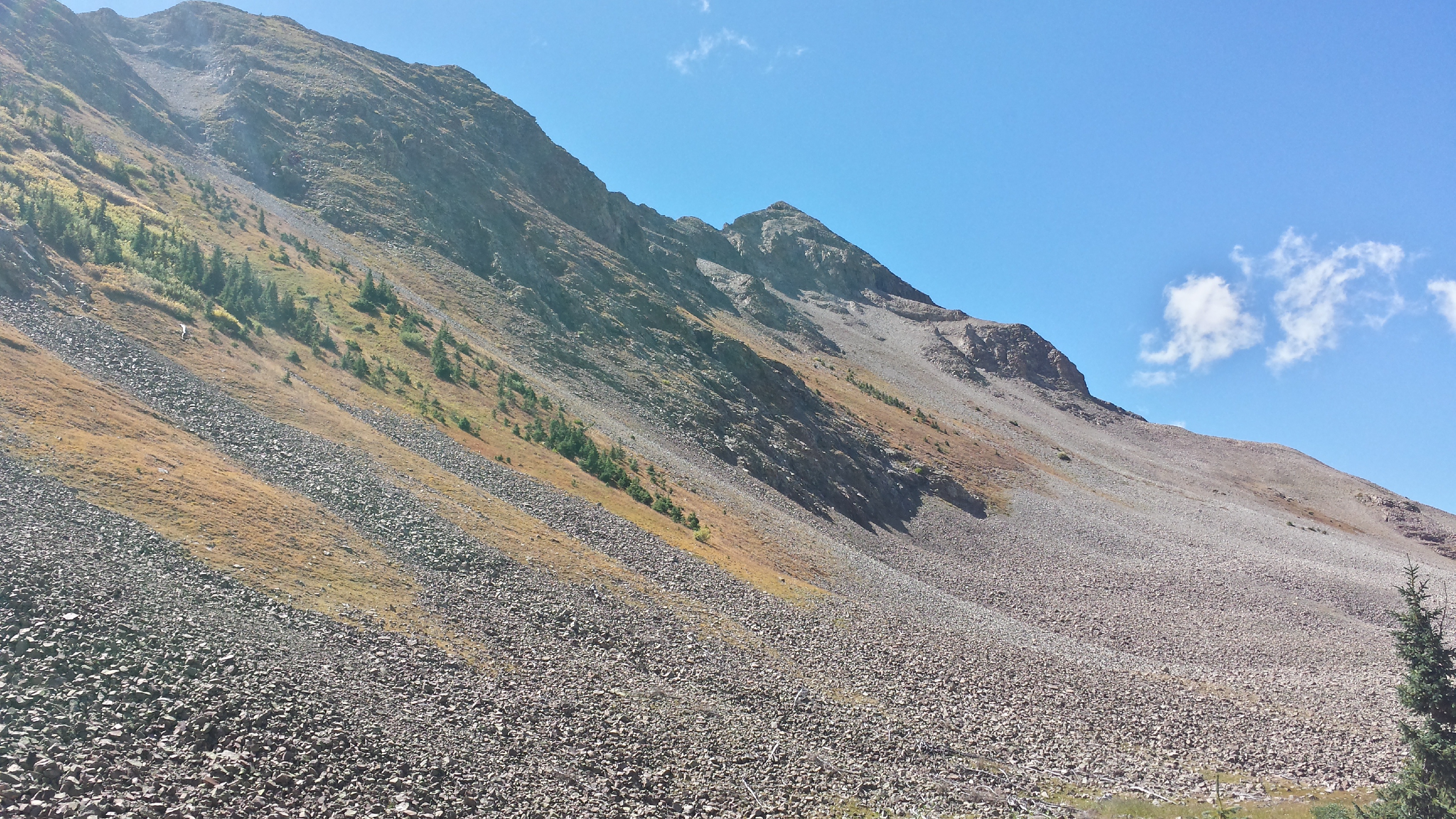 Blackhawk Pass is one of the more distinctive passes we’ve approached, all striated in red and grey. I’m sure Spesh would have something to say about what the hell happened to make such an interesting pattern of rocks, and I miss him terribly in that moment.