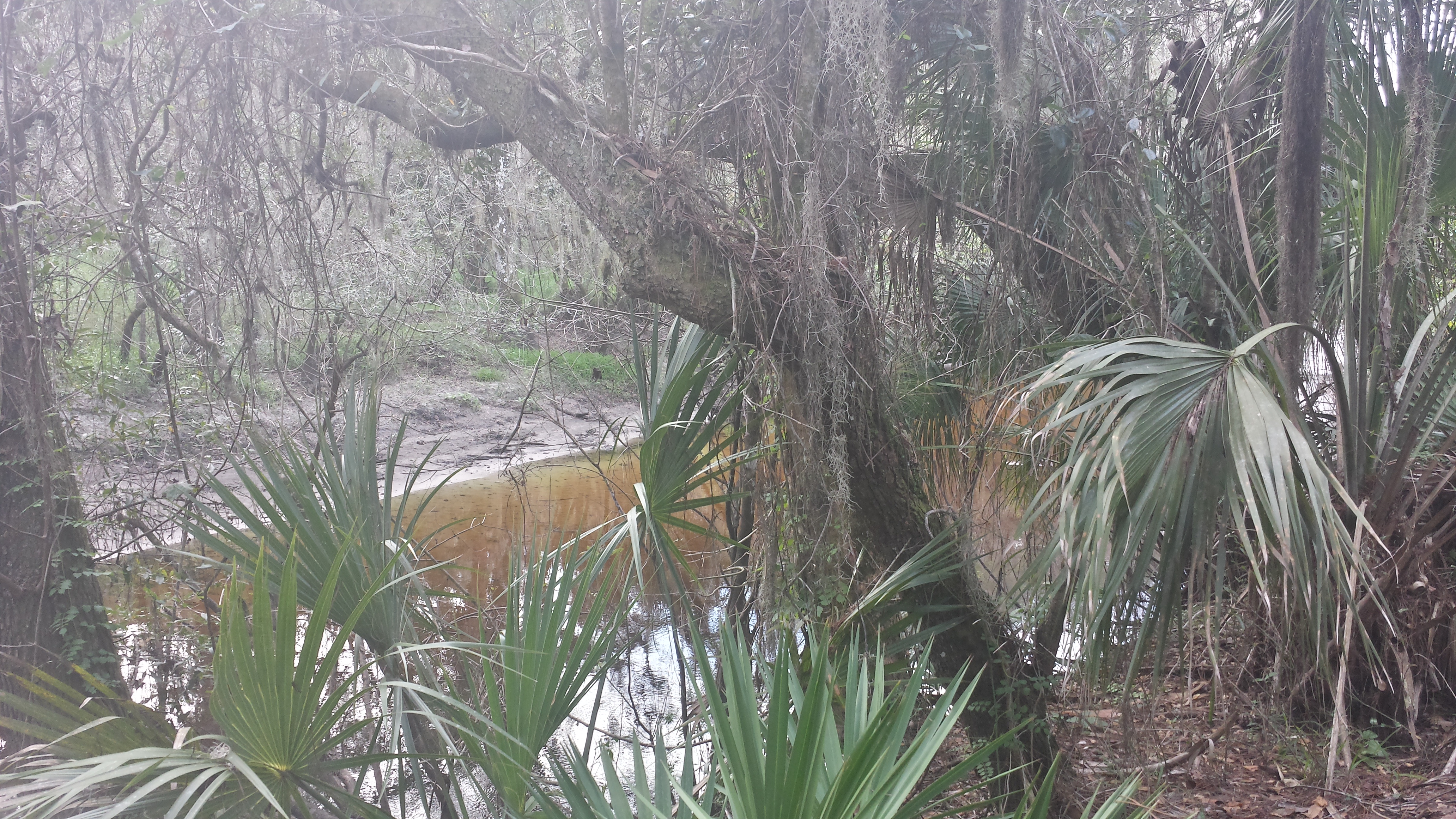 We’re in Florida over the holidays, Spesh and I, visiting my family, and while the family cars are mostly preoccupied with driving my parents to and from work, we managed to persuade one to take us to Little Manatee River State Park twice – the first time, to peek around (and see a wild tortoise!1), the second, to hike the 6.4-mile stacked loop just north of the river. As Florida is not known for its strenuous terrain so much as its humidity, mosquitos, and more toothy fauna, I figure this hike’ll be perfect for stretching our legs.
