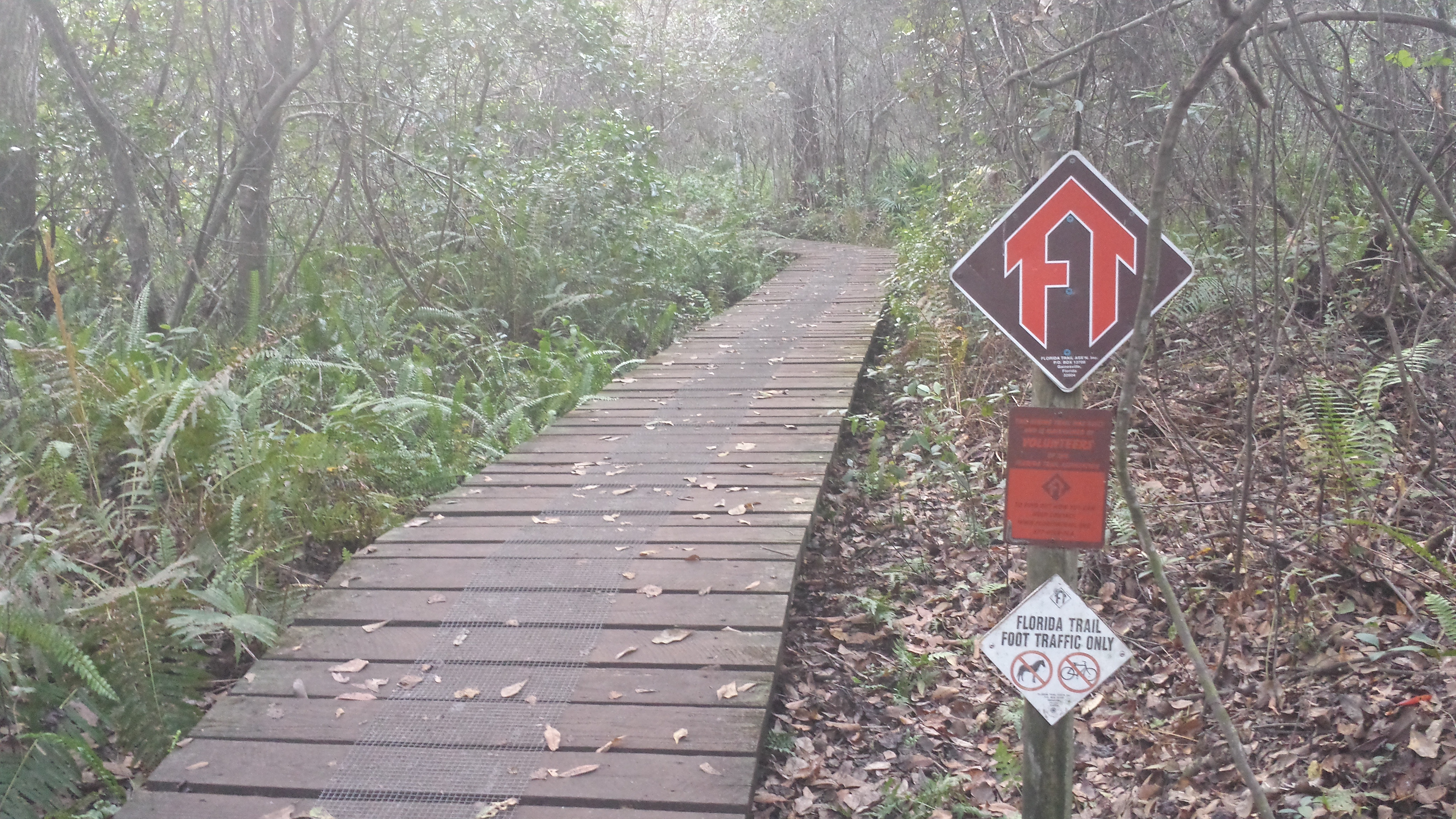 After slipping a fiver in for the entrance fee, we amble up the connector trail and up to the beginning of the loops. Initially, we think this little piece of trail was a part of the Florida National Scenic Trail (FNST), but that doesn’t make any sense, given the whole “loop” aspect; turns out, it’s maintained/protected by the Florida Trail Association, the folks responsible for the FNST. Thus, the signage: