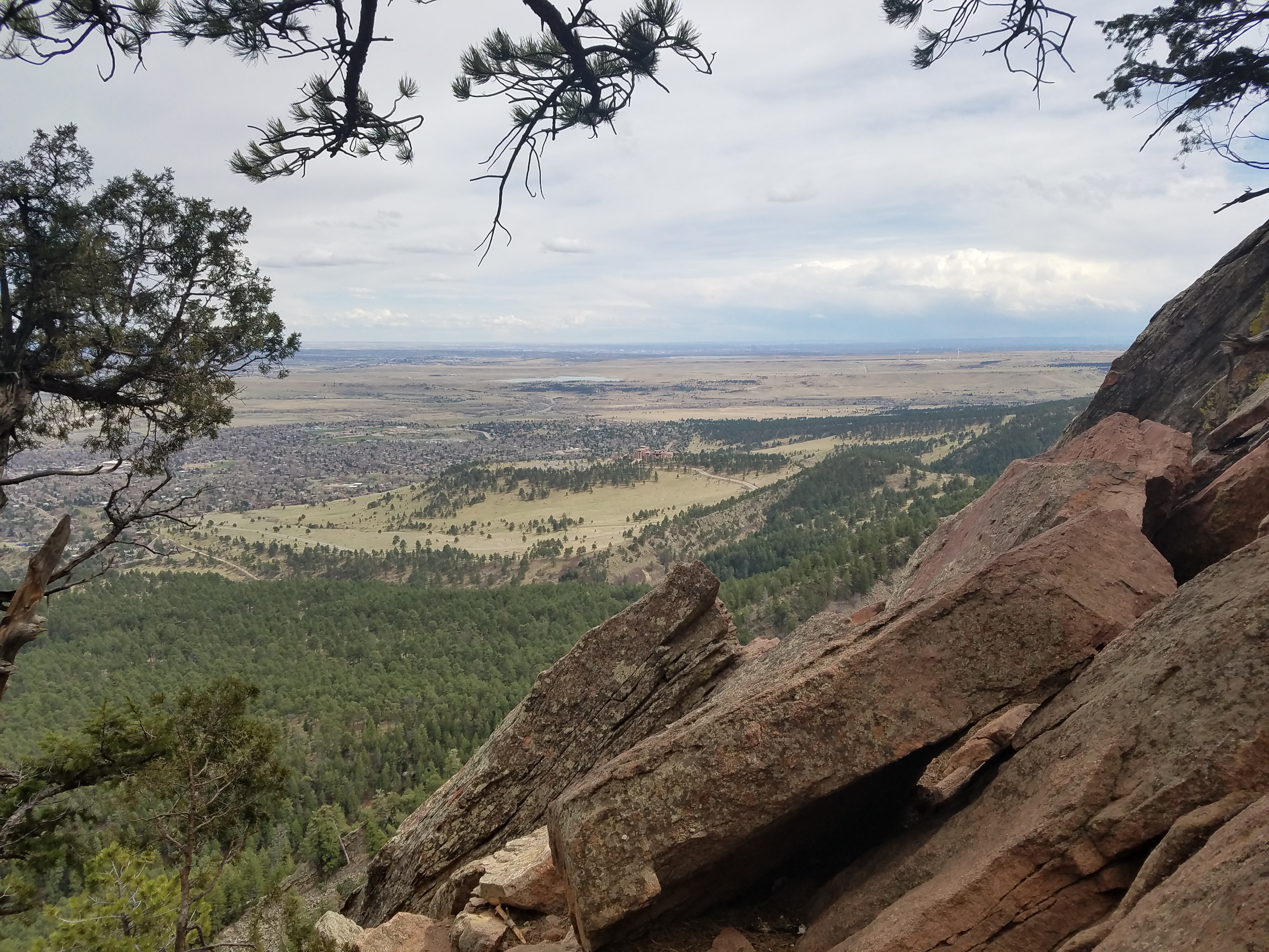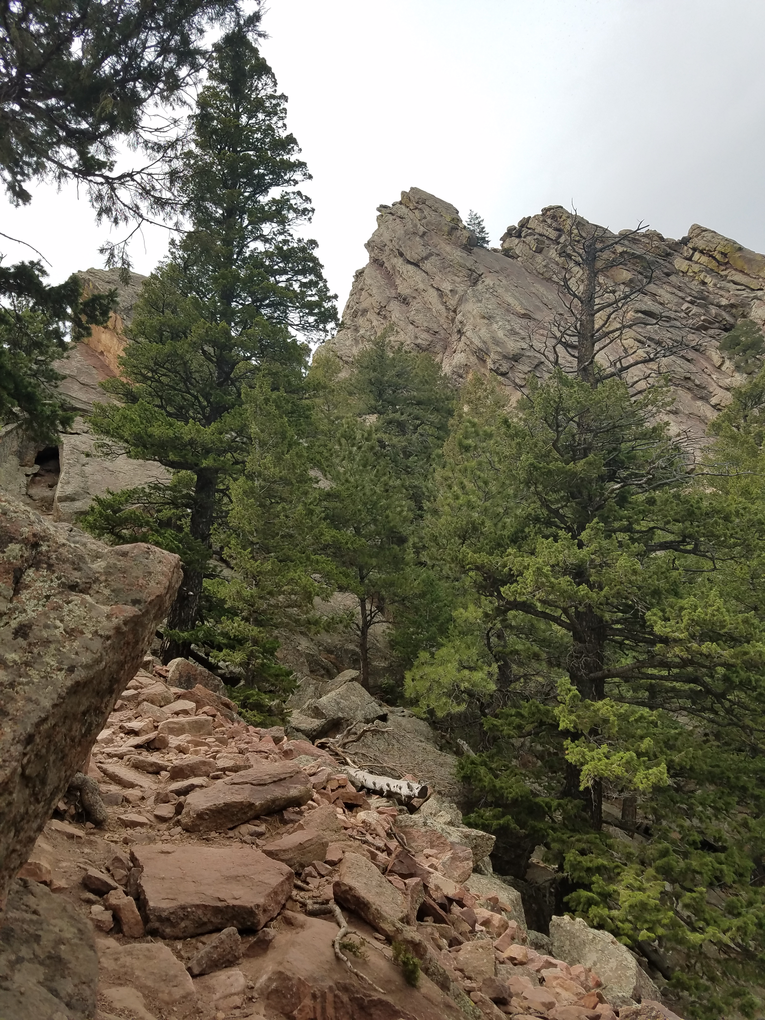 The Chautauqua Trailhead is busy for the relative gloom of the day; there’s no parking at the trailhead or in the park, though I find some a couple of blocks away. The beginning of spring in Colorado, always tempestuous, seems to be taking a particular toll on all us outdoorsy folk, and we’re looking for any excuse to stretch our legs. Everyone seems pretty ambitious at the bottom of the hill, me most of all – I’m the odd one out, strapped into a crazy-bright clearly-not-a-day-pack, hands just aching for the trekking poles I left at home. It’s training, right? I’ll make do without.