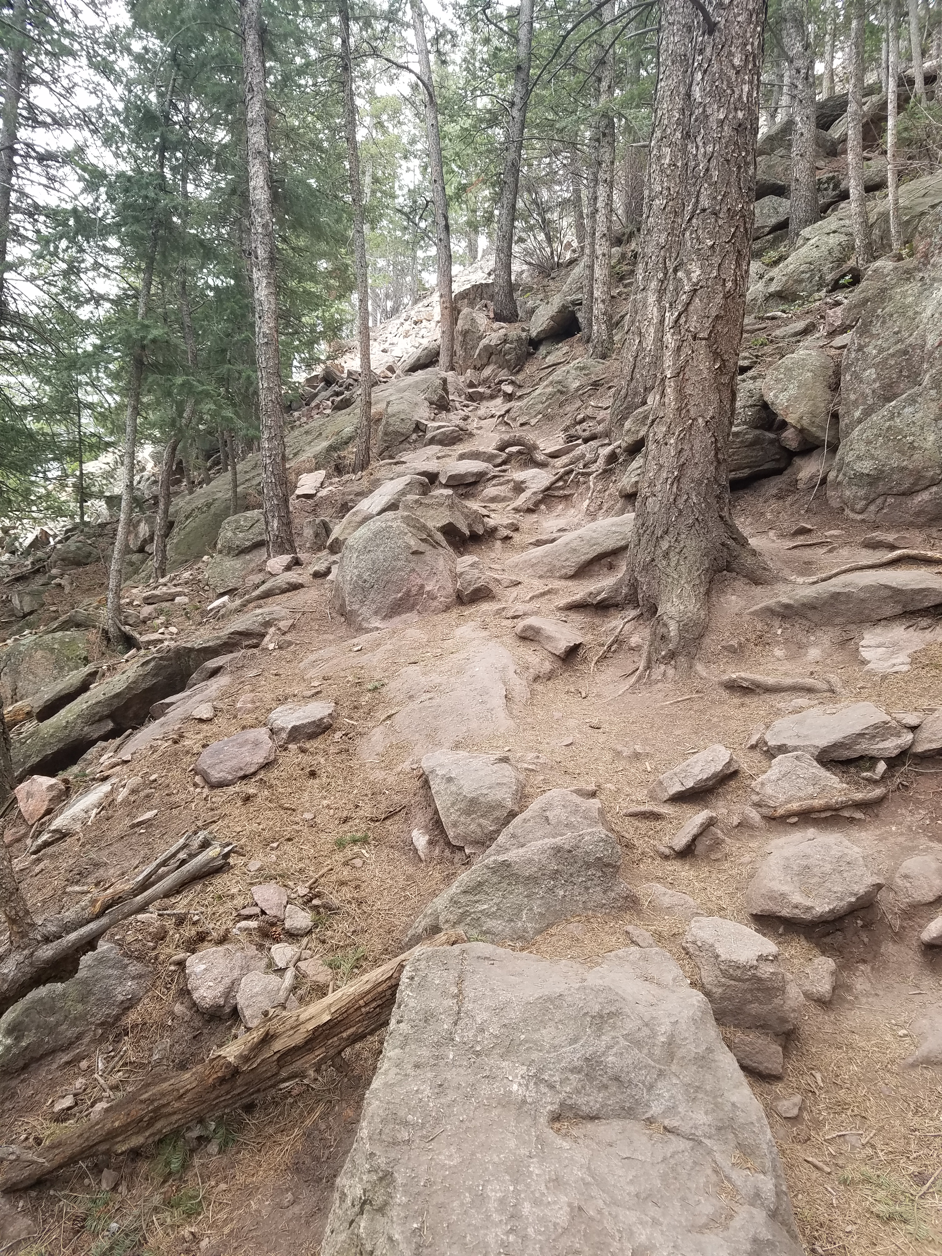 I can hear people whispering about me – about me, about my pack, about how “fast” I’m going. I’m passing a number of people, sure, but I don’t let it go to my head – I know I’m going to be on struggle street before too long – and not long after I turn onto the first/second Flatiron trail, sure enough, folks start passing me. I still feel like I’m doing well, though – it’s been an age3 since I’ve donned my pack, I’m in basically brand new shoes, and most of the folks on the trail are unencumbered. It’s hard not to have a positive attitude, even while huffing and puffing.