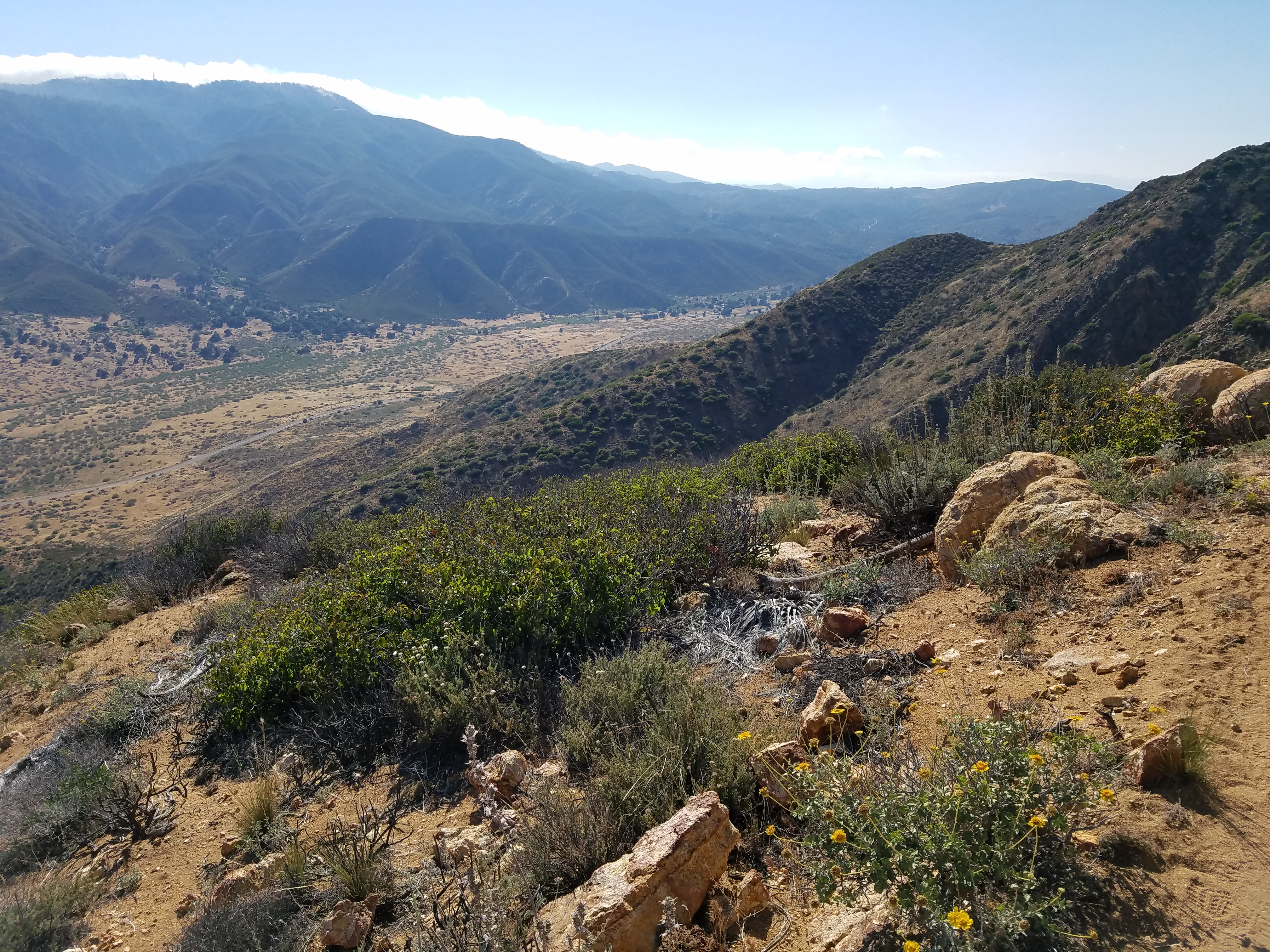 This morning’s climb is kind of a welcome relief from the bone-jarring down of yesterday. Plus, we’re meandering around a west-facing slope, so we spend a fair bit of time in shadow. I get passed by a couple from the underpass, followed shortly by another woman from the underpass. They’re killing it, and I’m going as fast as I… well, as I wanna, really. I’m not even to mile 100; plenty of time to make big miles later. The main thing for now is to keep from getting injured, even if that means being passed a lot. As much as it stings my pride.