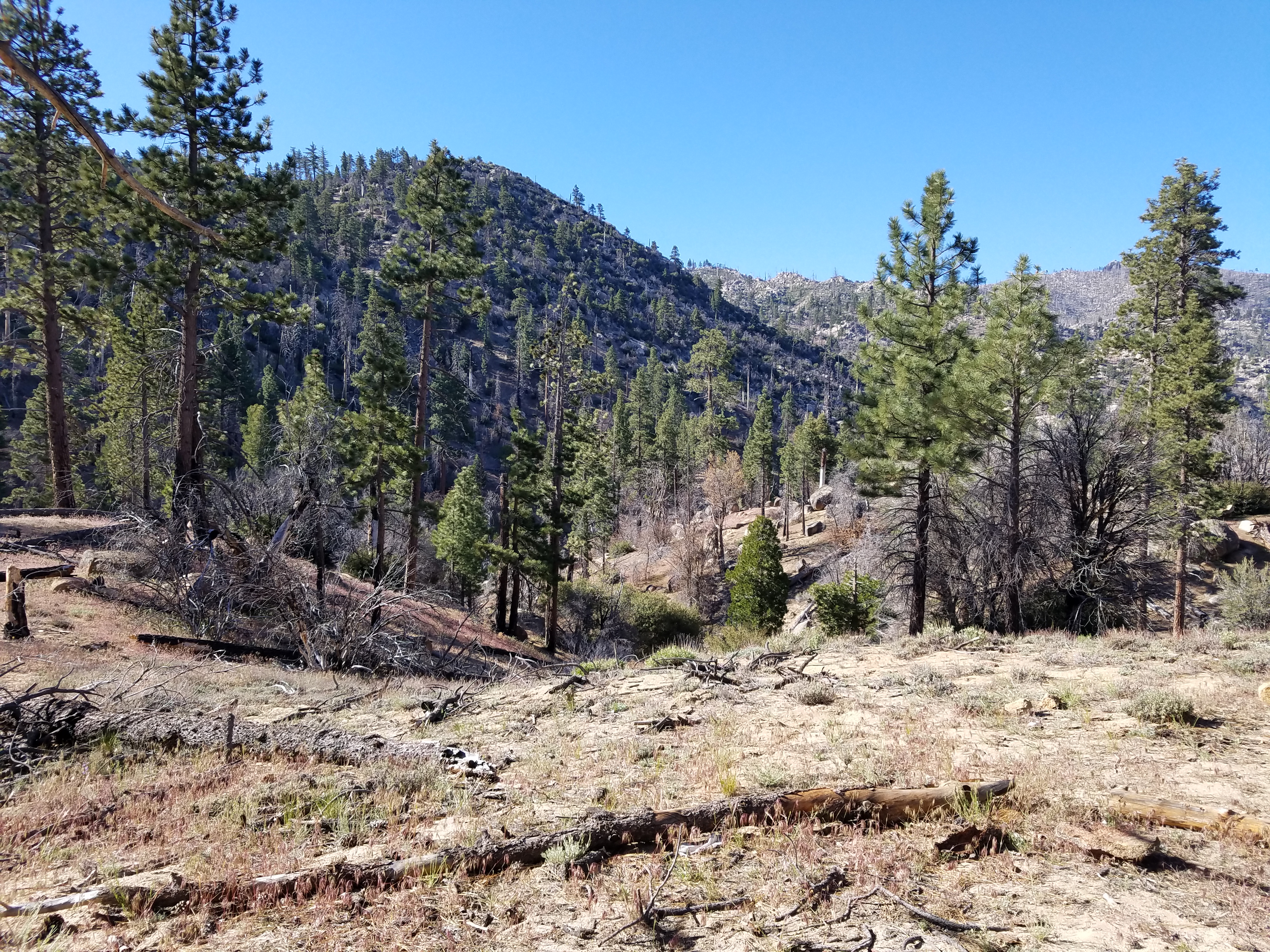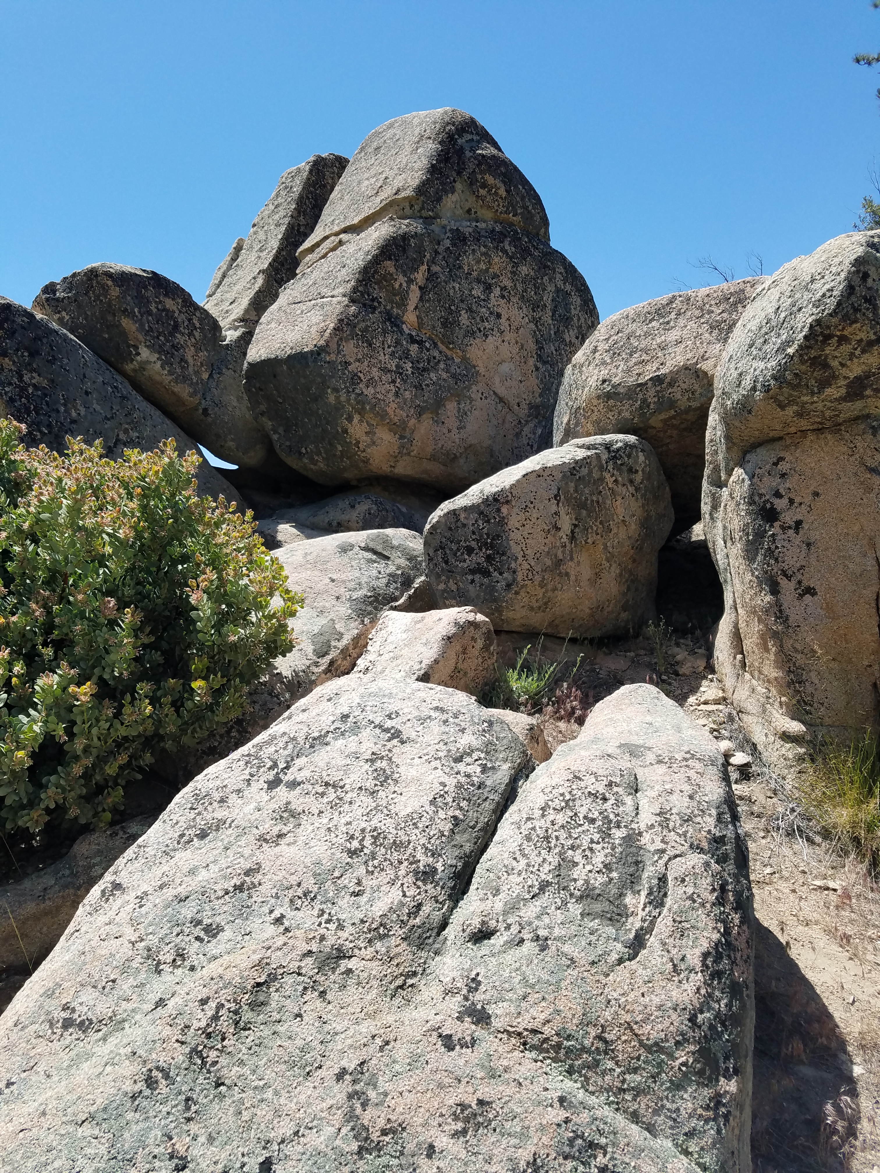 V-Dub passes me when I hunt for water at a dry part of Holcomb Creek; I leap ahead of her down the trail, get passed when I head down a sketchy hill to water that’s only flowing in the middle of the Creek. I’m picky about my water, so it’s sloshsloshslosh to get some hopefully less squicky water, then back up the sketchy hill, which seems easier than it should be. I’m rolling and munching on my morning pop tart when who do I come across but Moses.