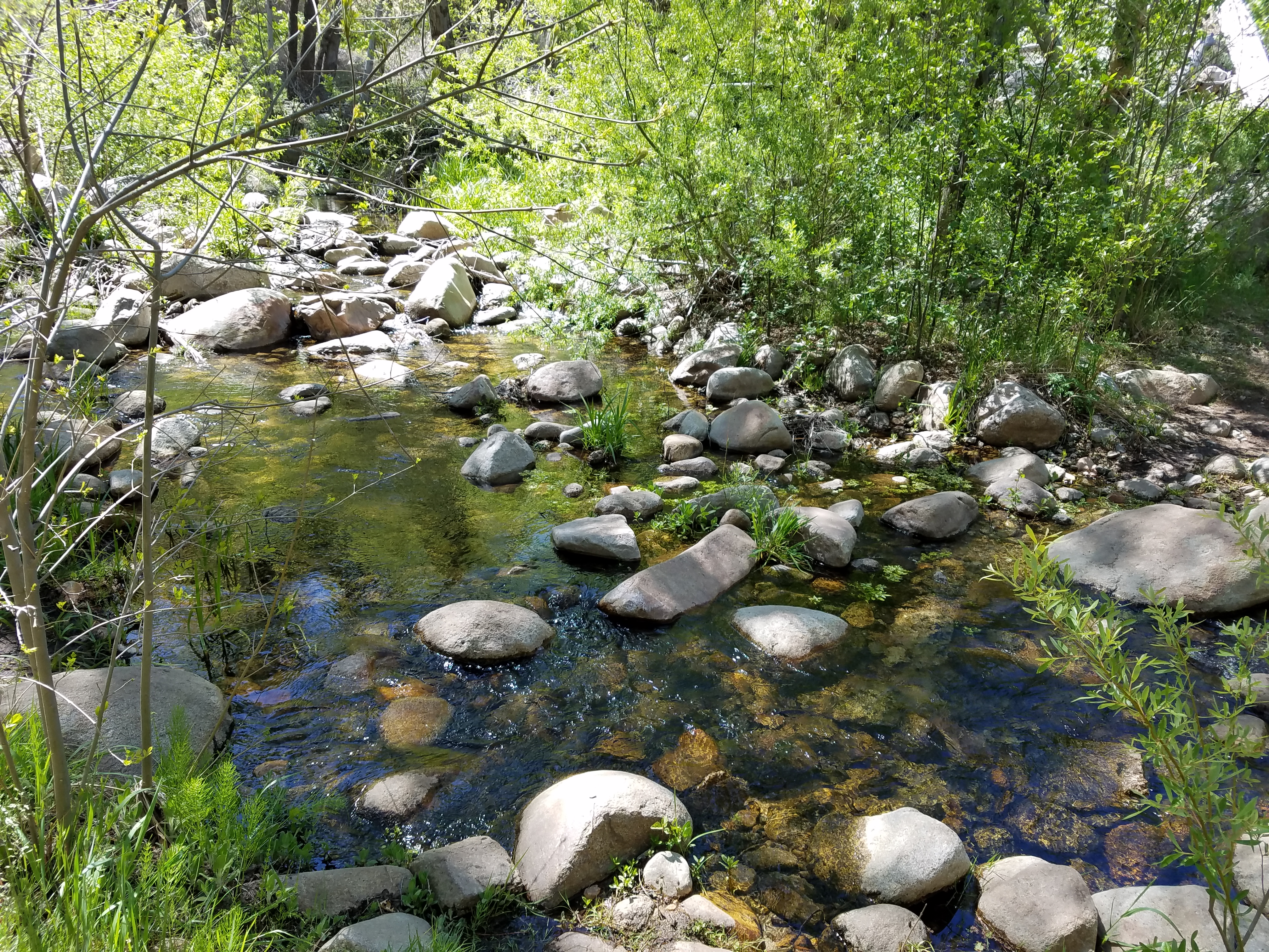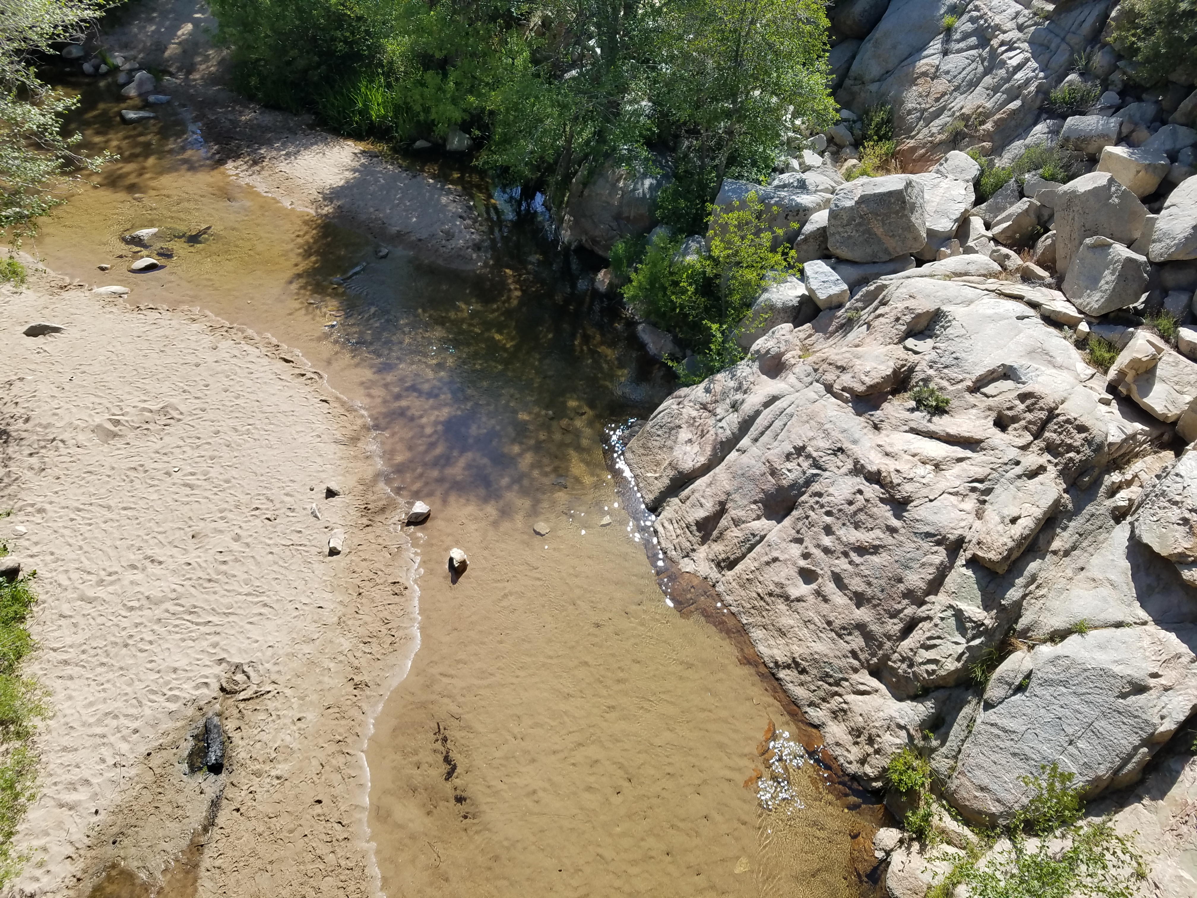 Nightcrawler’s eating when I arrive, and we’re soon joined by Eric and Jackson and Bambi and Peanut Gallery. We talk about the dayhikers; apparently, Deep Creek is one of the most populous spots on the PCT, given the hot springs. We sit and eat and drink water and try not to think about the kids playing upstream from where we’re collecting1. One by one, folks start to drift off, until I’m the one drifting back up the sharp hill and over the bridge.