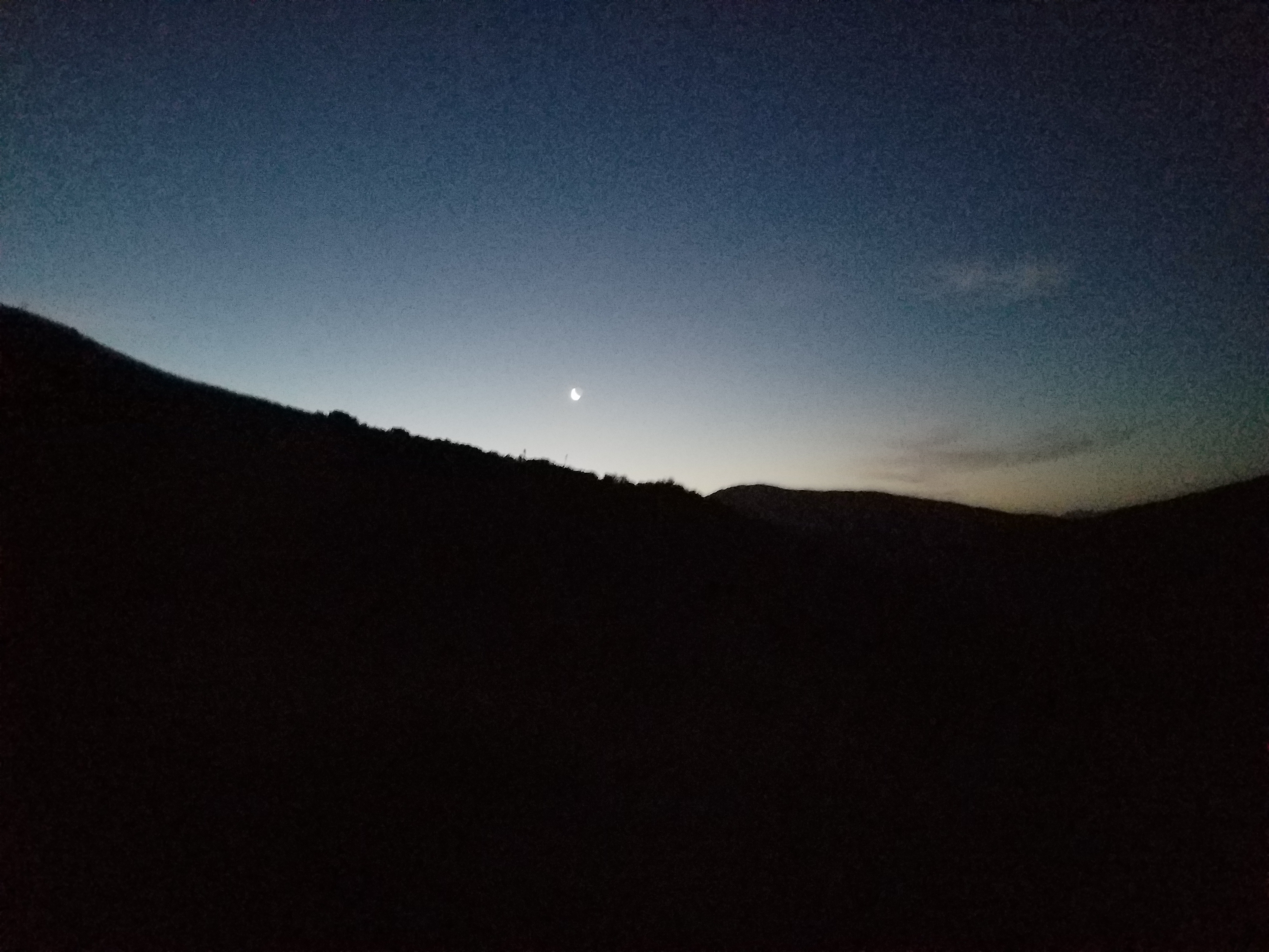 I’m a little worried about mountain lions when I stop to shed layers because of the already-hot breeze; it’s almost light enough to see by, but also too dark to navigate the uneven terrain without a headlamp. Prime kitty time. But I don’t have any problems as the sun makes its way over the horizon.