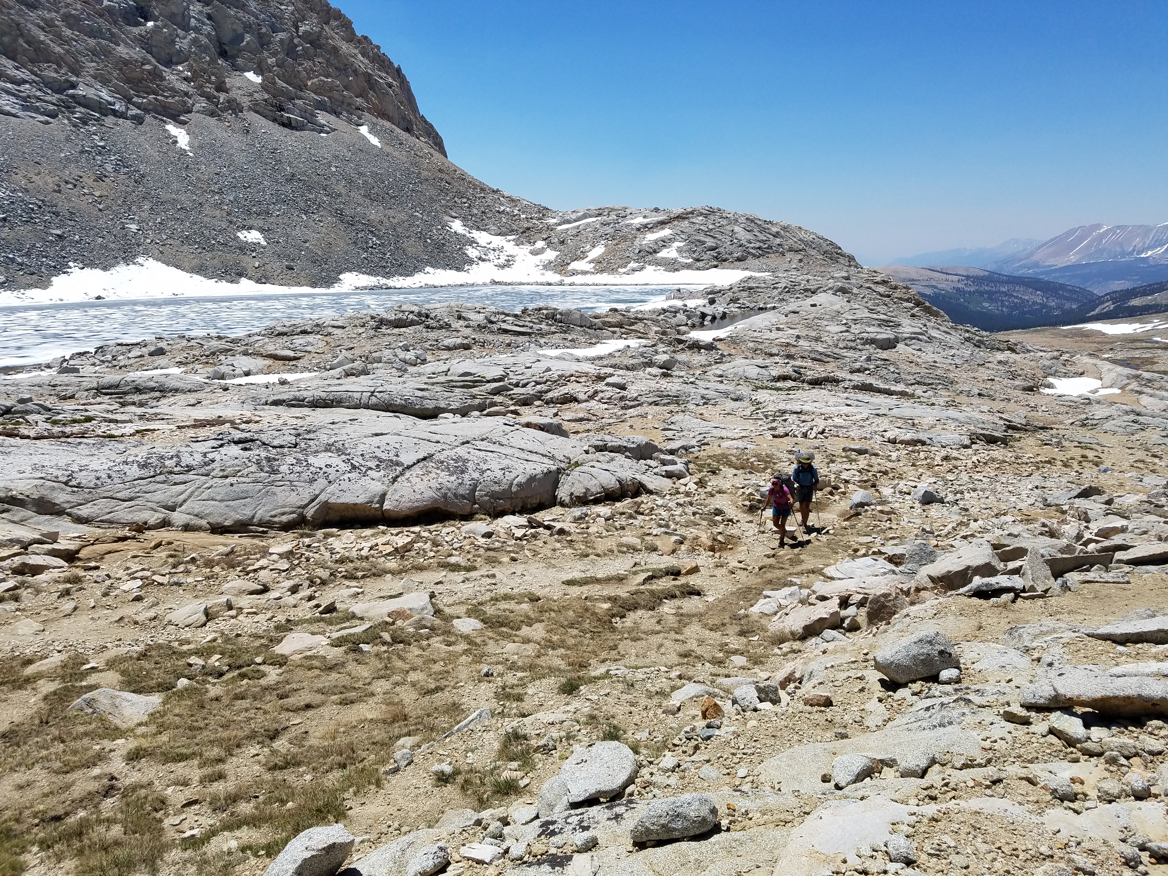 Down, down – I’ve got Disney songs stuck in my head, recalibrating Part of Your World to work for thruhikers1 since there are so many of us around, of both the PCT and JMT varieties. Most of the JMTers are still in their camps, large tents and laundry fluttering in the breeze.
