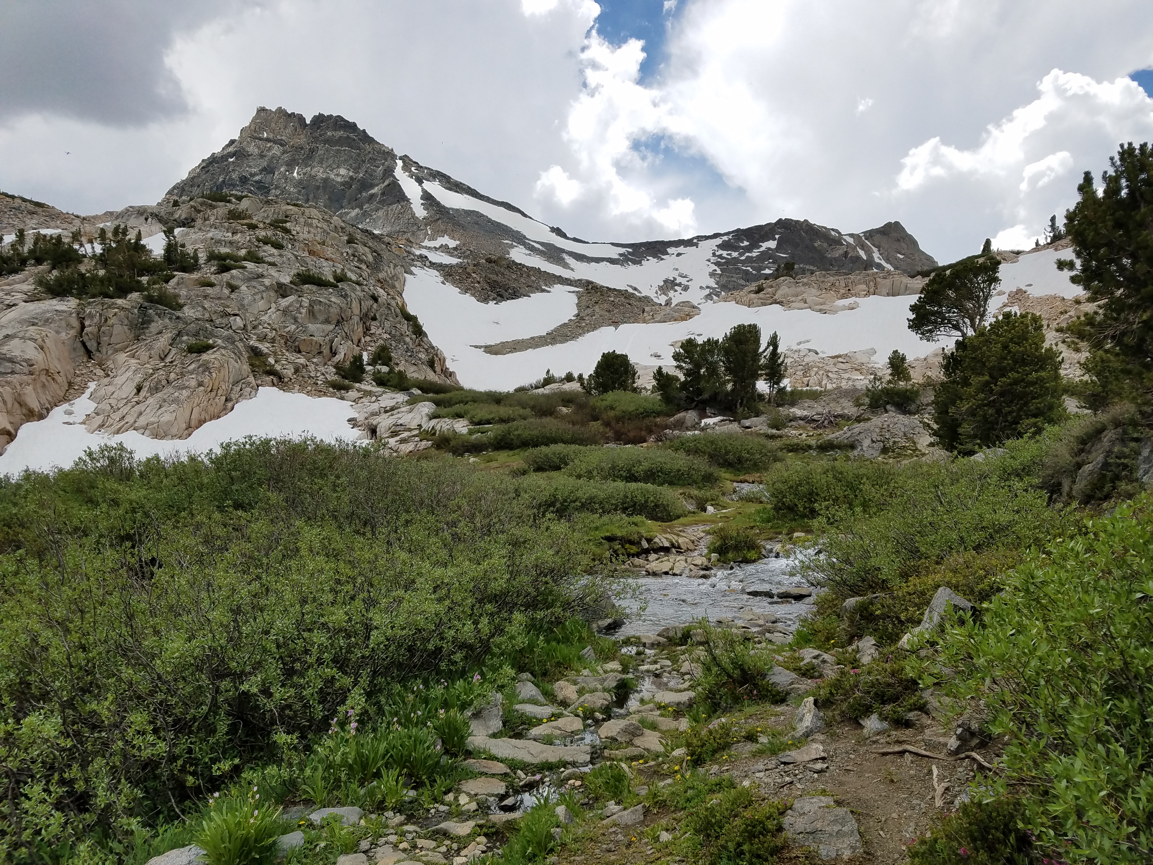I greet the morning with a combination of excitement and a quiet sense of dread – we’re getting back to the PCT again, but to do so, we have to go back up Kearsarge Pass. Down was such a drag that I’m not looking forward to the opposite, but it must be done. So it’s off and back up towards Kearsarge.