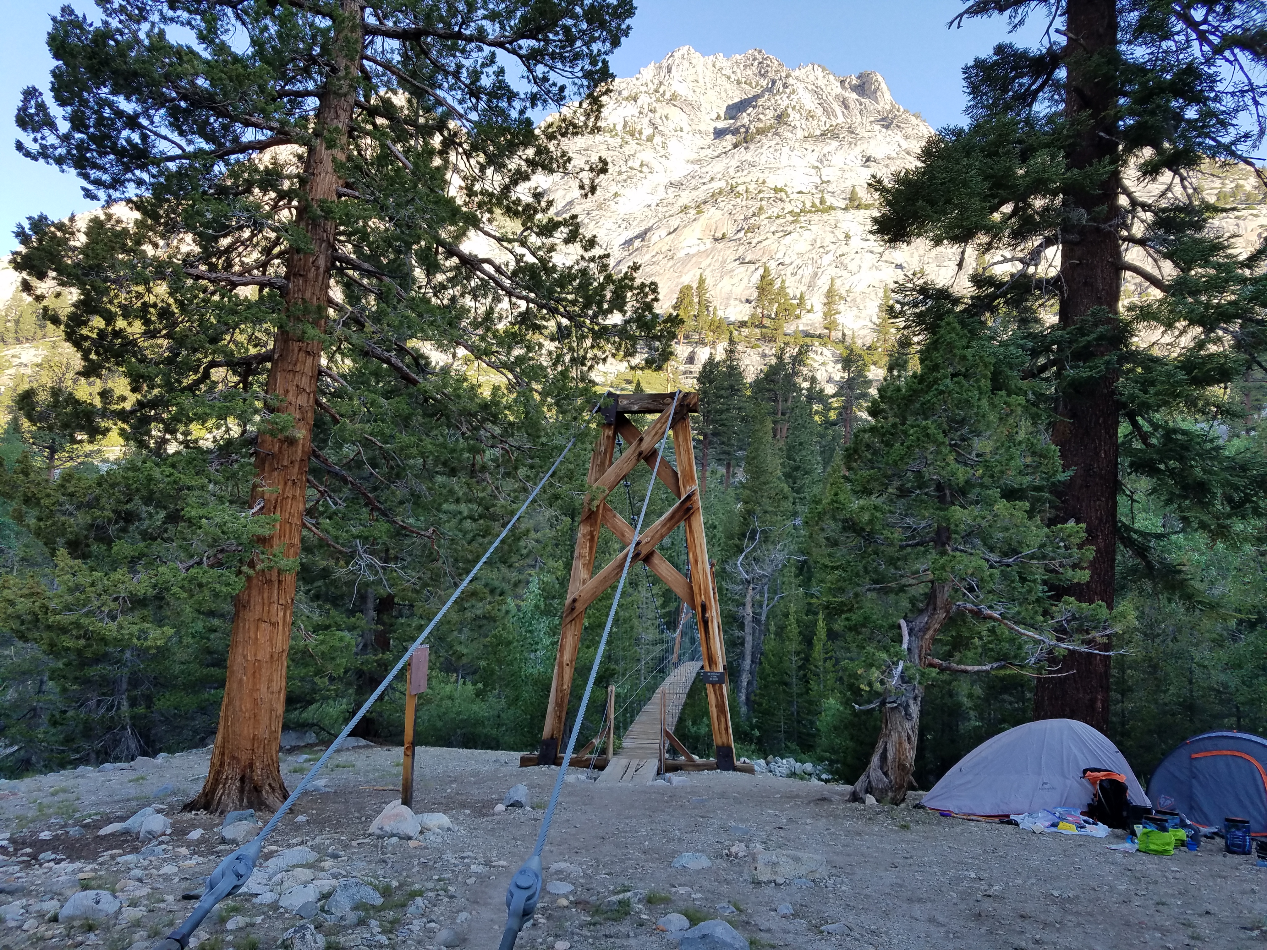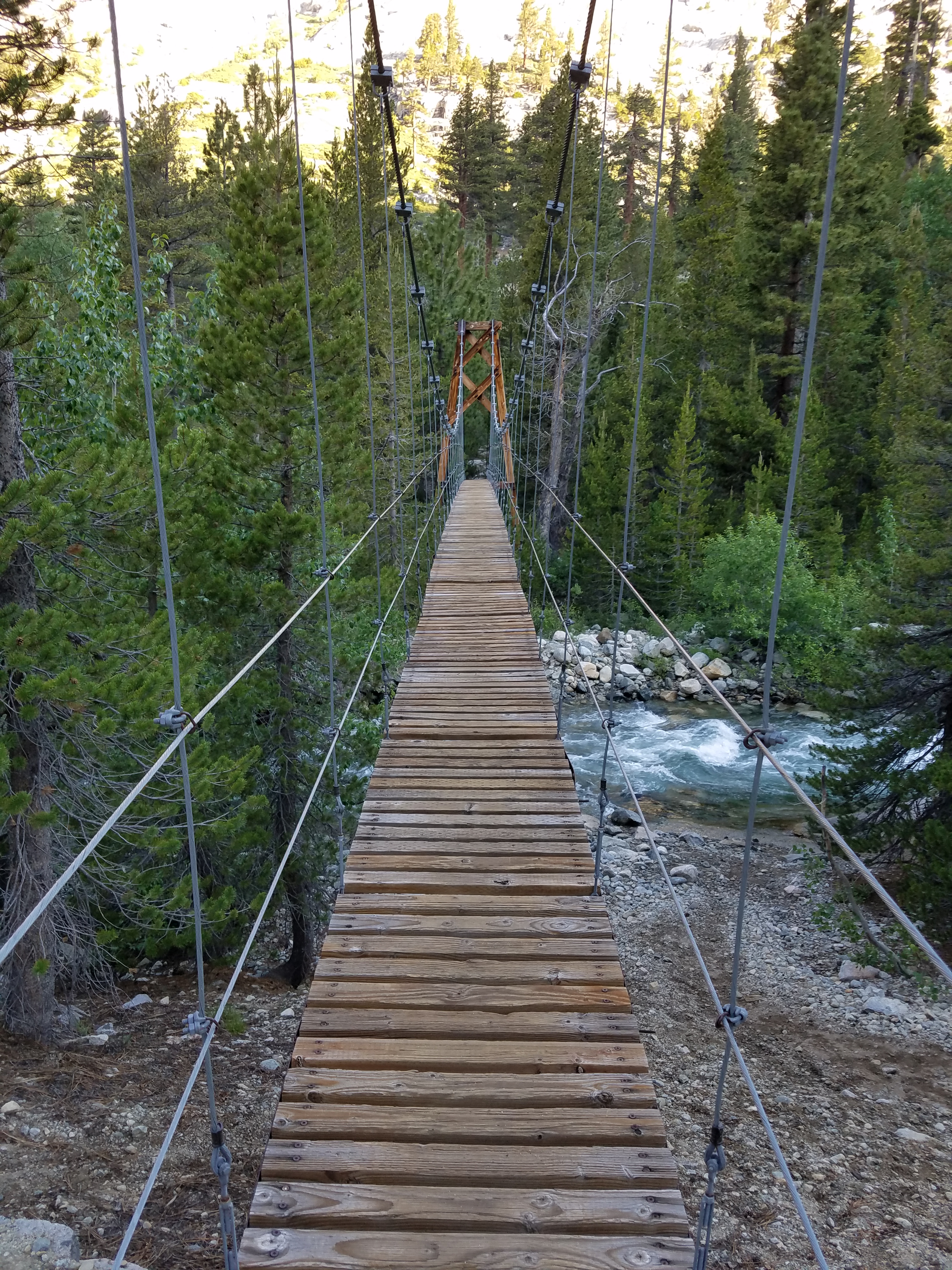 But I’m moving, off and over the sketchy suspension bridge over Wood Creek that’s pretty well-built and that I shouldn’t be worried about, but am suspicious about anyway.