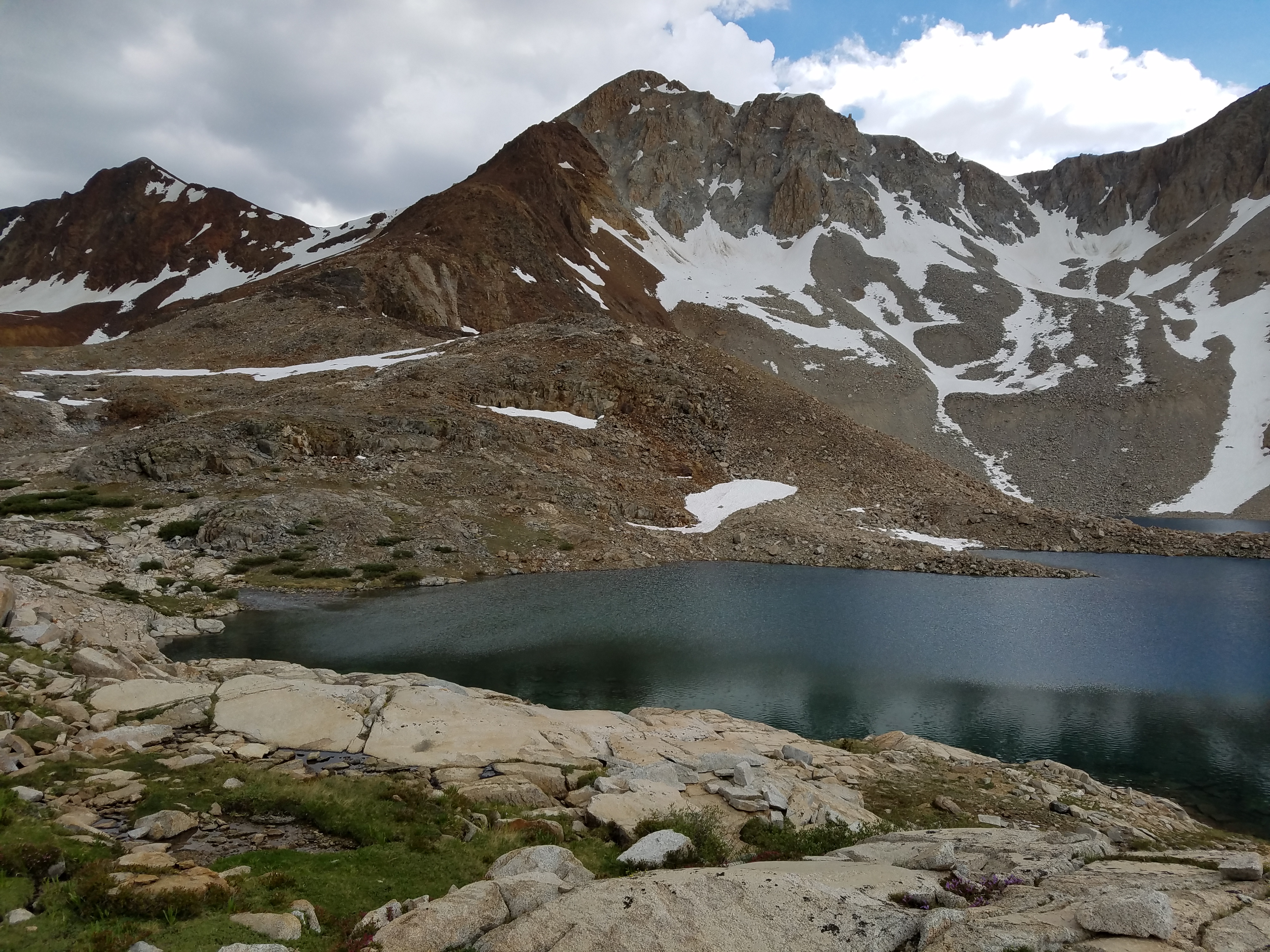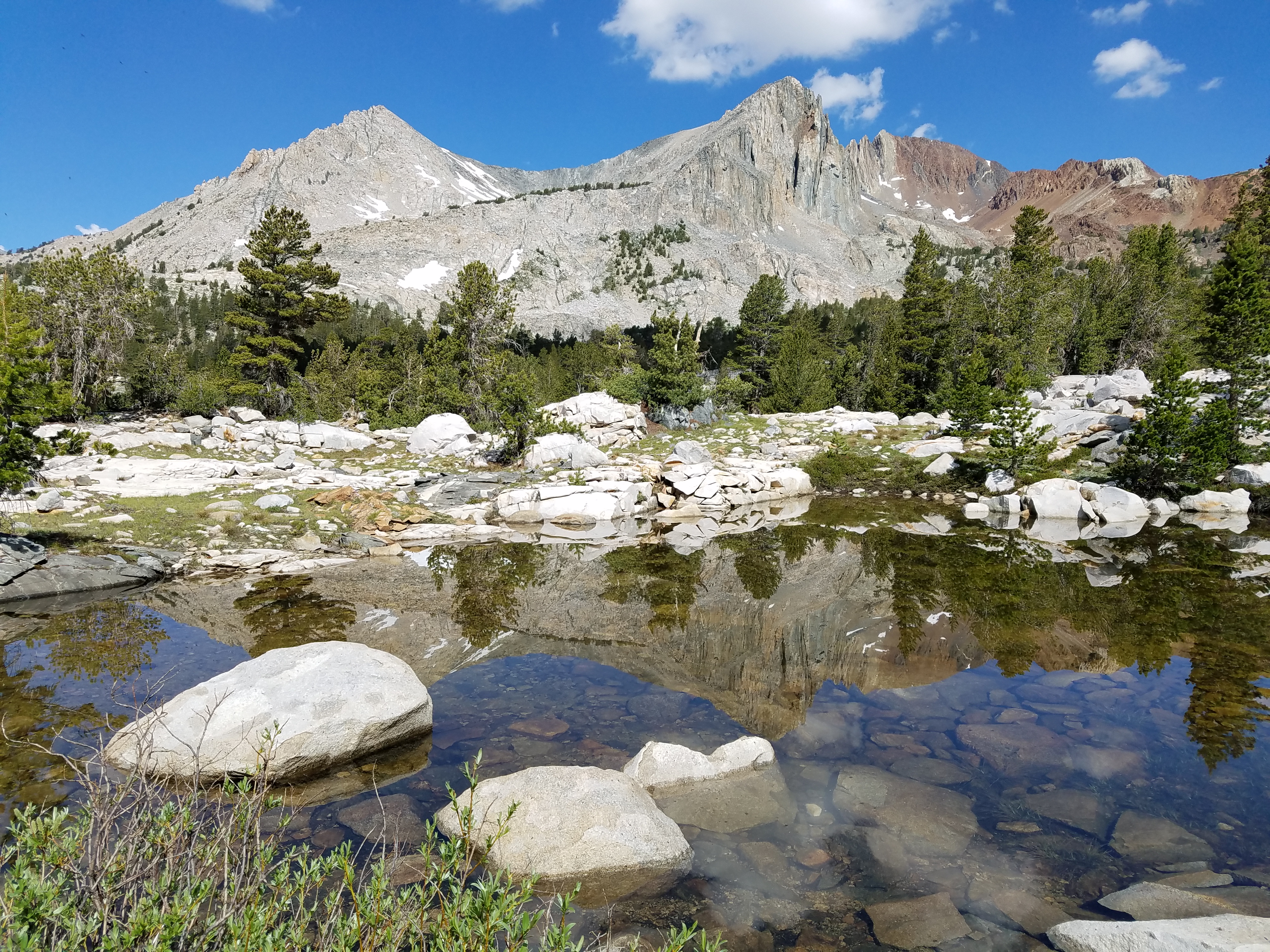 The other group we’ve been leapfrogging around decides to try for Mather Pass tonight, since it’s still early – around 4pm – but it’s 5 miles up and then another 3 to the next site, and we’re not sure we can make it. I think I can make it another few miles, but since another group already claimed the site closest to the top, and since Homegrown and Sprinkles start setting up just a bit on from the crossing, I guess I’m here for the night. Smiles, not miles, certainly through the Sierra. And particularly since I’ve planned a 19-mile day for tomorrow, which gets us to the base of Muir Pass.