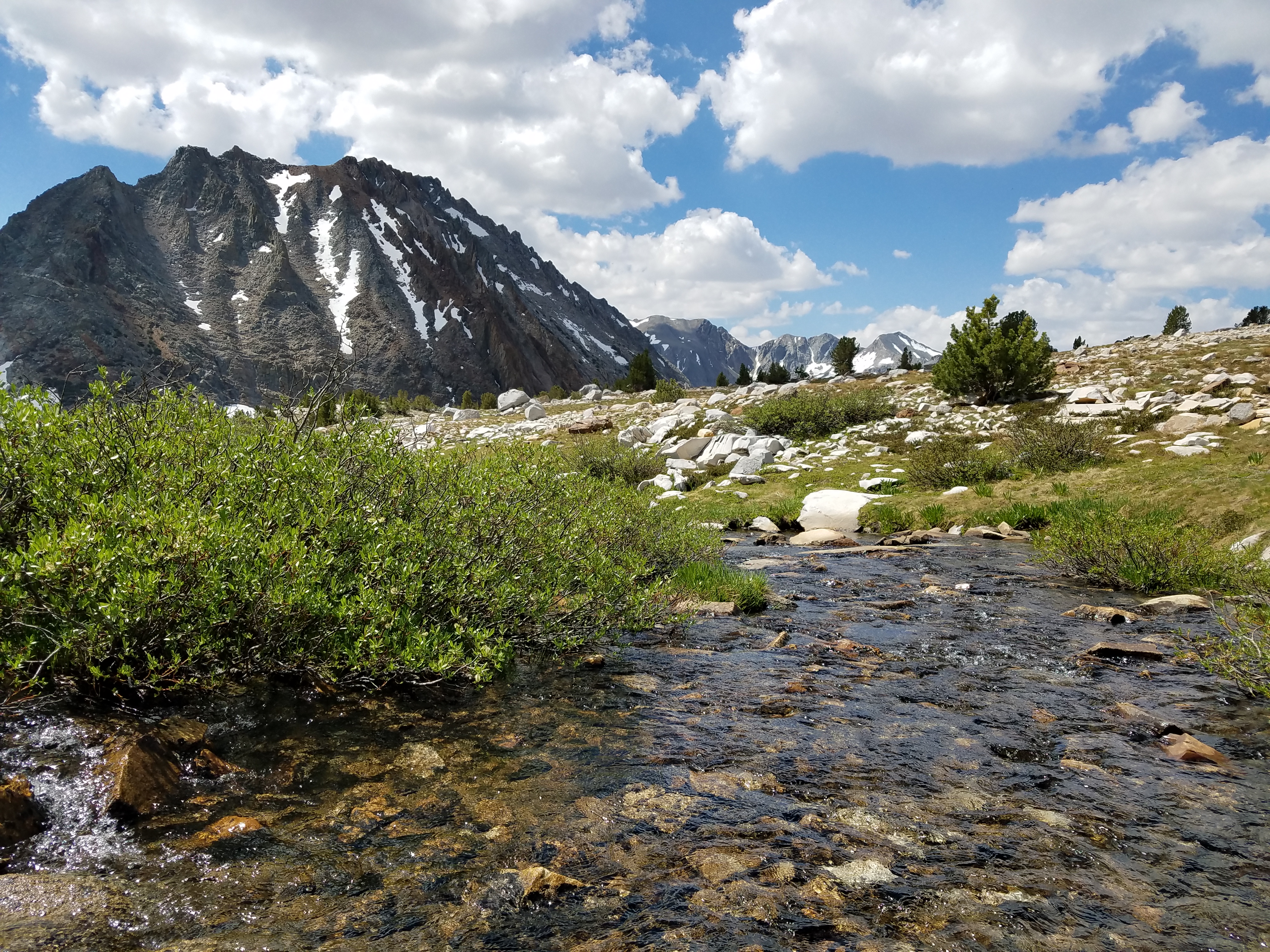 I’m singing it near a stream crossing when a marmot actually crosses about 5 feet in front of me. I see the similarities – we thruhikers run around like we own the place, start staring and sidling closer when food is brought out, are bolder in the face of potential danger than maybe we ought to be. The stream crossings are getting woolier as the day progresses, but we’re all watching each other’s backs.