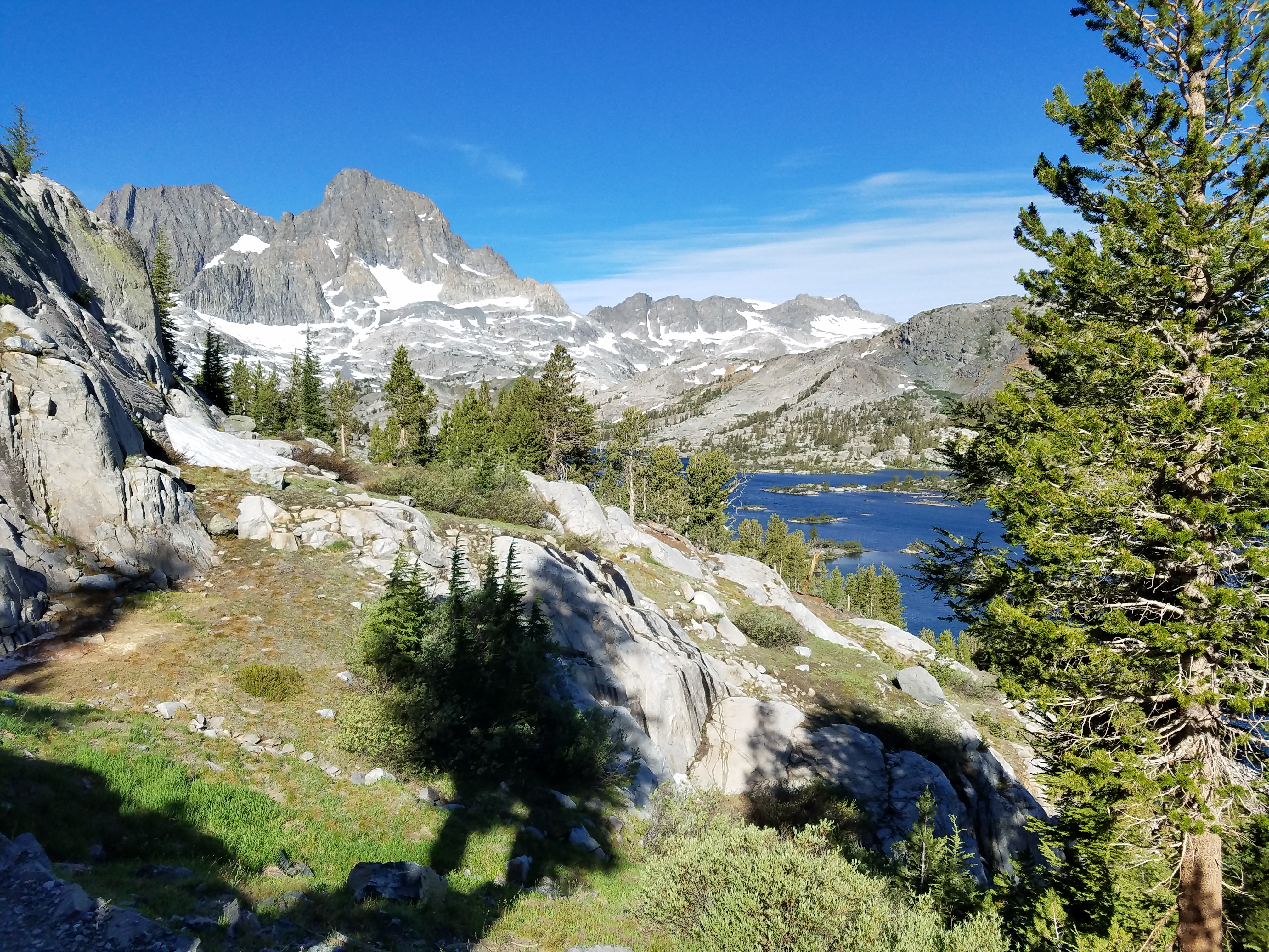 As I rejoin the PCT for my first proper pass of the day – Island Pass – the view gets better and better. The Pass itself is kind of underwhelming too, but I’m busy learning about wine fraud and fairy tales and the Voynich Manuscript, so I don’t particularly mind as I head down, then back up to Donohue Pass.