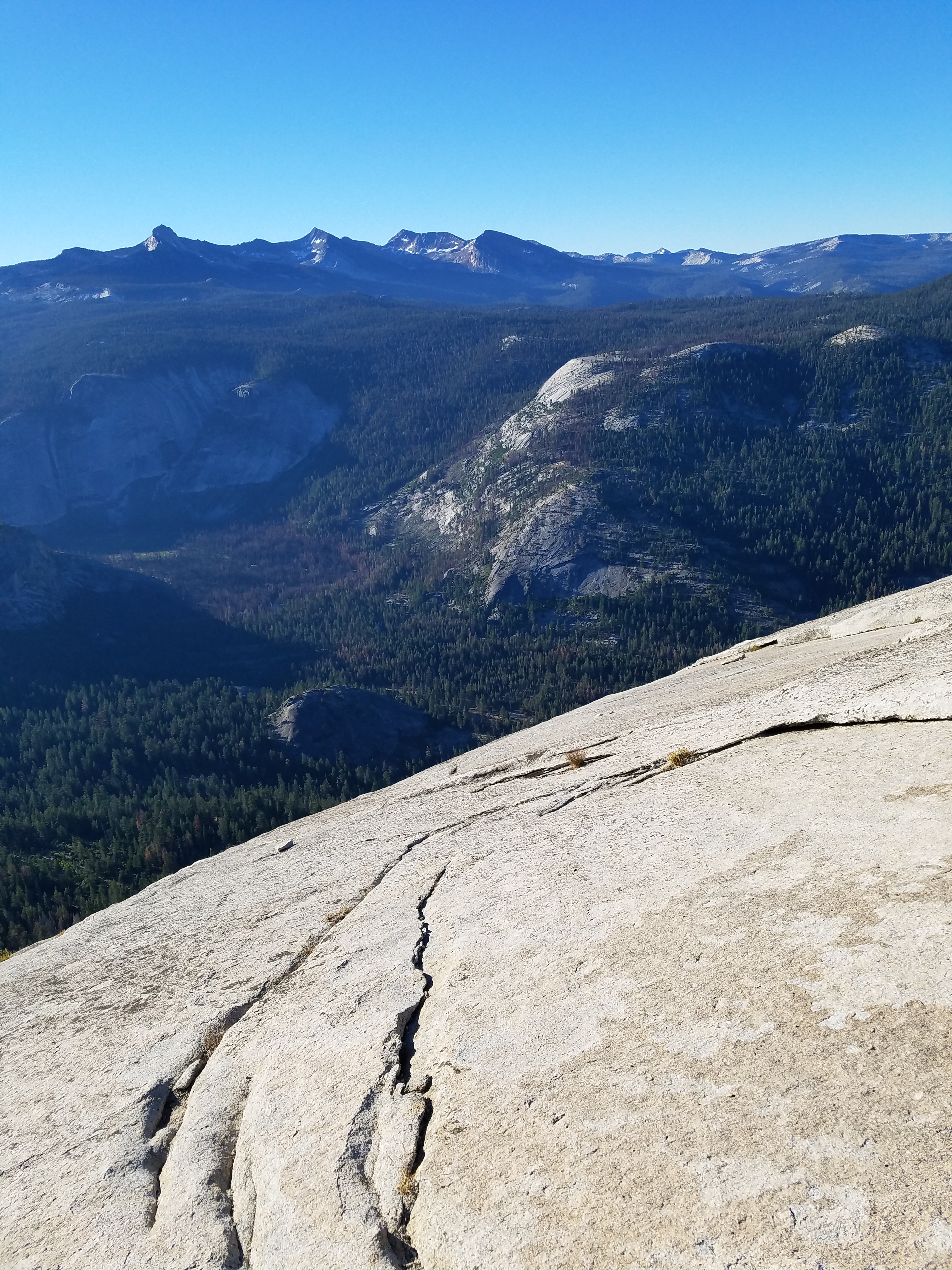 I get to the bottom and almost cry, but it’s back up Sub Dome, where apparently, I’ve attracted an audience. Among them, a lady who’s climbed Half Dome five times throws me some shade for being idiotic, and in this moment, I can’t blame her. I want to talk, calm my nerves, but she wants to climb. I should get off this damn mountain anyway.