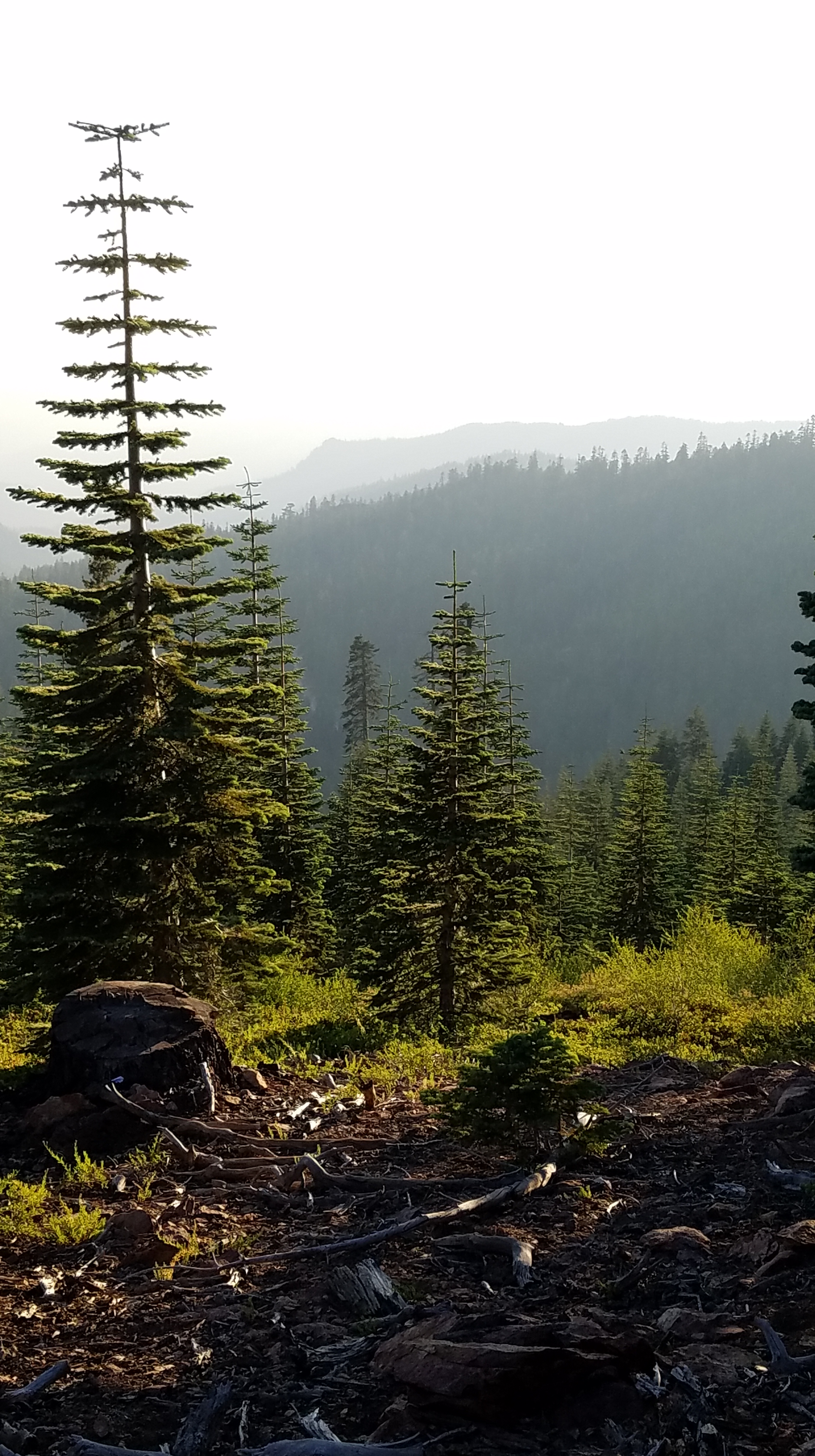 I’m particularly glad we didn’t have to walk the road back up to the trail, because we’ve got an 8-mile, 3000-foot climb ahead of us, and the day hasn’t gotten any cooler. Luckily, it starts by switchbacking us up through a heavily-wooded area, and I zoom through it, maybe too quickly – the next section, while beautiful, is mightily exposed to the sun.