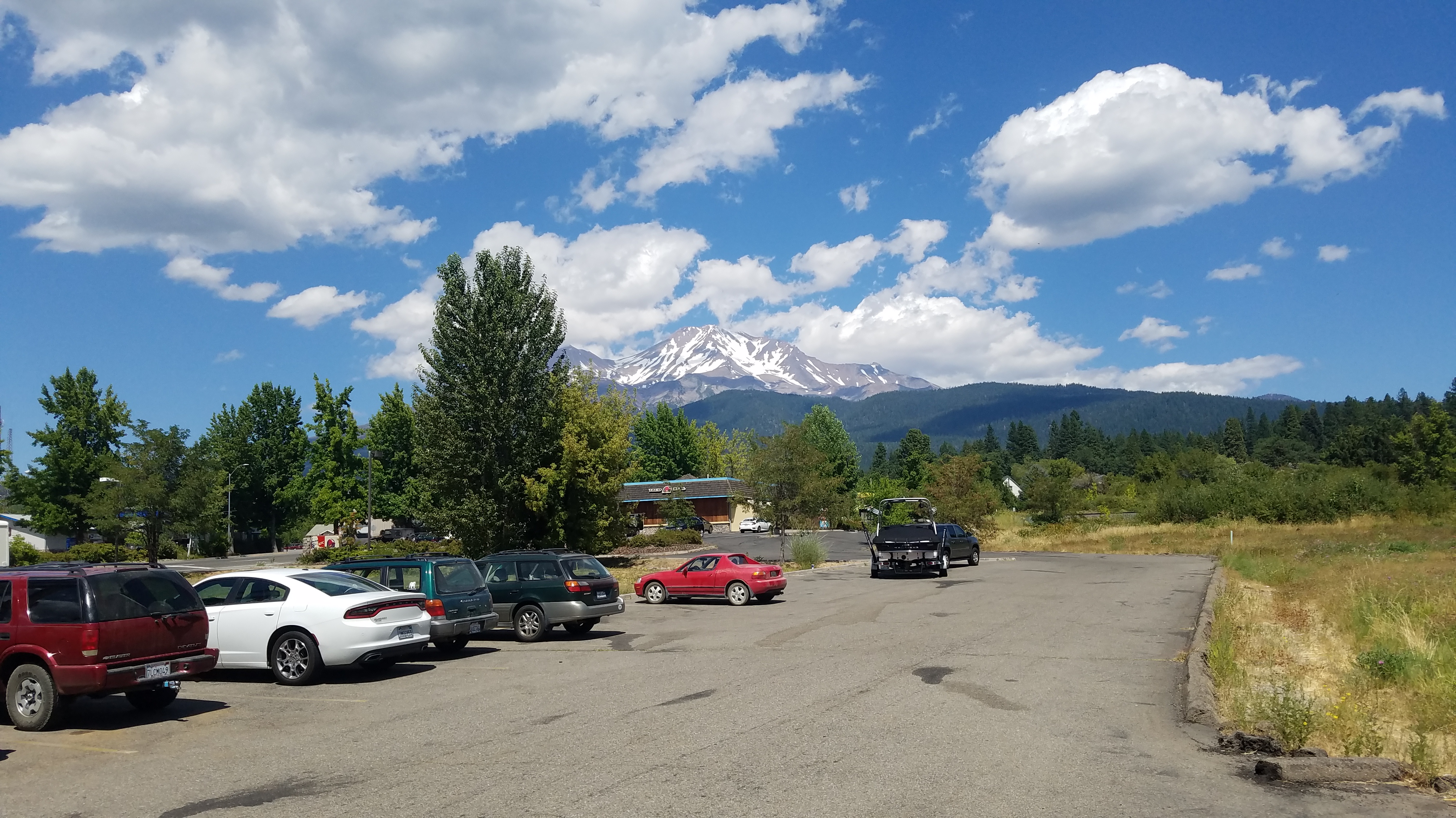 We head back to get our things from Fifth Season, get a note from Dirt Squirrel on our packs, meet MacGuyver back from climbing Shasta in the store. He says it was worth it – I say it’s worth coming back for, and don’t particularly regret not doing the trek. We all head across the street to the “park” that consists of a picnic table in front of the police station, and I explode my pack and my resupply to get everything together. Dirt Squirrel joins us, looking a lot better than the last time we saw her. No more fever, hooray! She and Chili are hanging out for another day to let some friends catch up with them, but Pineapple and I are both concerned about our dwindling bank accounts and the dwindling amount of time before October. We still have over eleven-hundred miles to go.