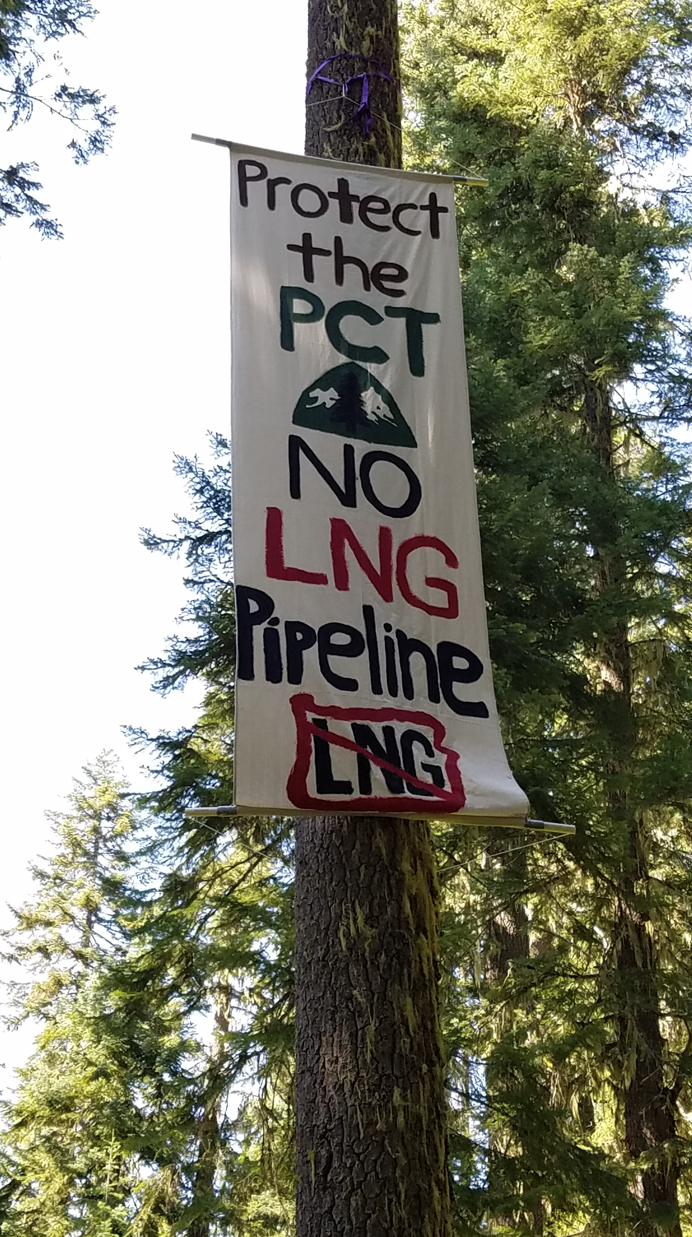 I walk on, walk on – the heat and the woods make the scenery from one mile to another melt into sameness, makes the walk so much longer than it should be. The ordeal’s only interrupted by an information station on a pipeline that’s meant to run through this section of trail: