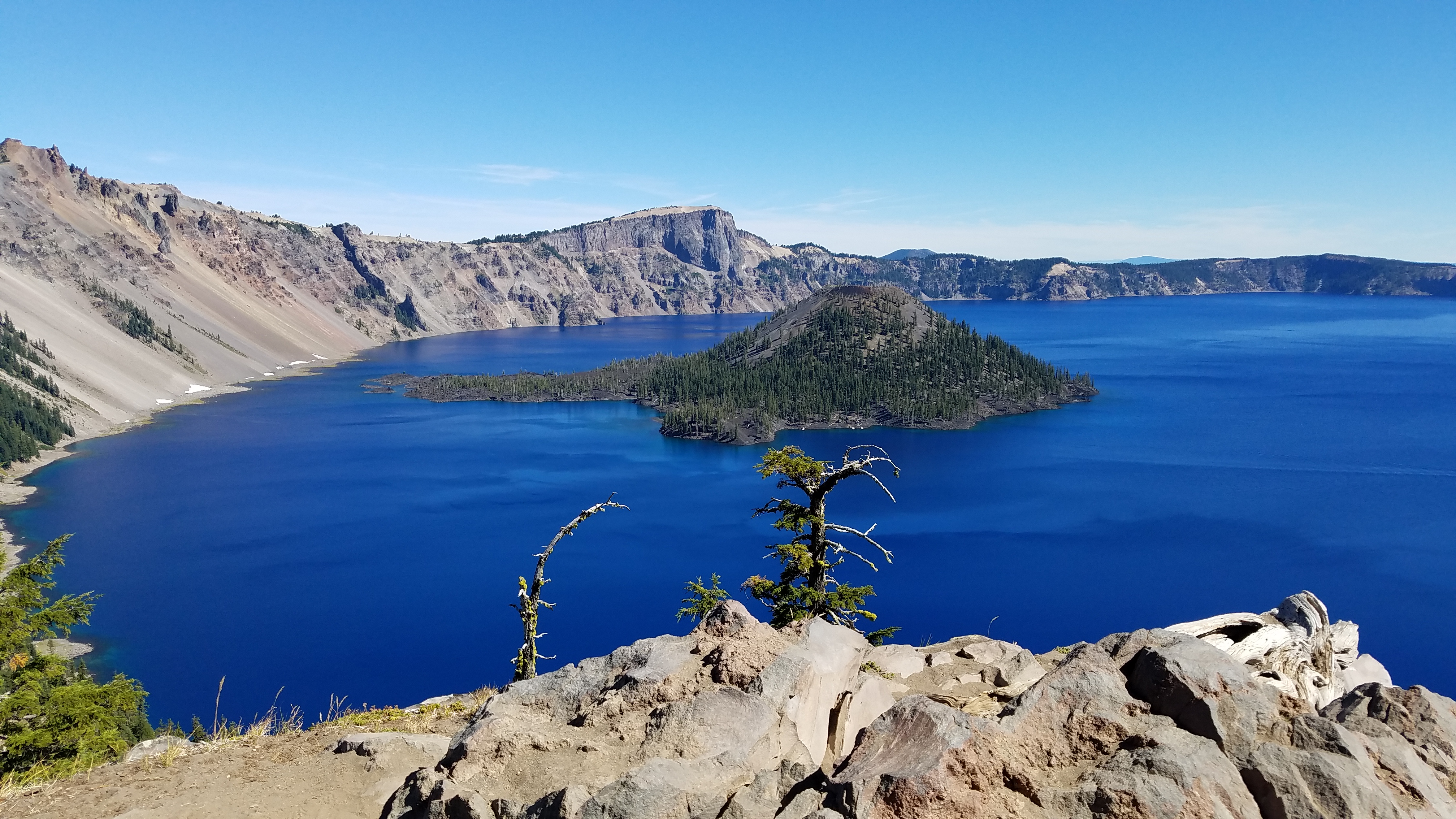 I linger for as long as possible, take as many pictures as I can, try to sear this day into my mind. I don’t know if I’ll ever make it back to Crater Lake, but I am so, so thankful to be here, so grateful that I’ve walked nearly 1850 miles already and, barring injury, I’ll walk 800 more. Sometimes I just stand at an overlook and breathe, feeling the life within me. My mind floats to life after the trail, wonders how often I’ll get the impetus to feel like this. I try to enjoy it while it lasts.
