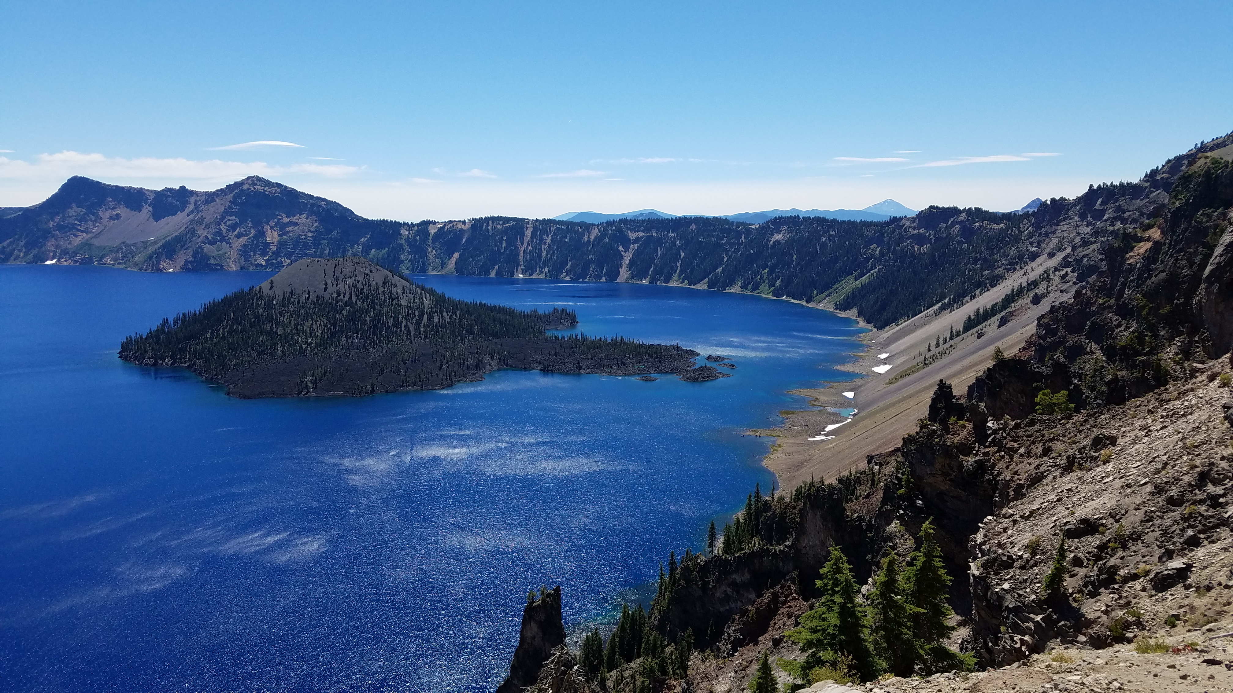 The Rim Trail is crowded, but not too crowded – it’s early still, and the first shuttle hasn’t run from Mazama yet. Roswell and Nine Toes catch and pass me, though, as does Butterscotch – Pineapple shouldn’t be too far behind.