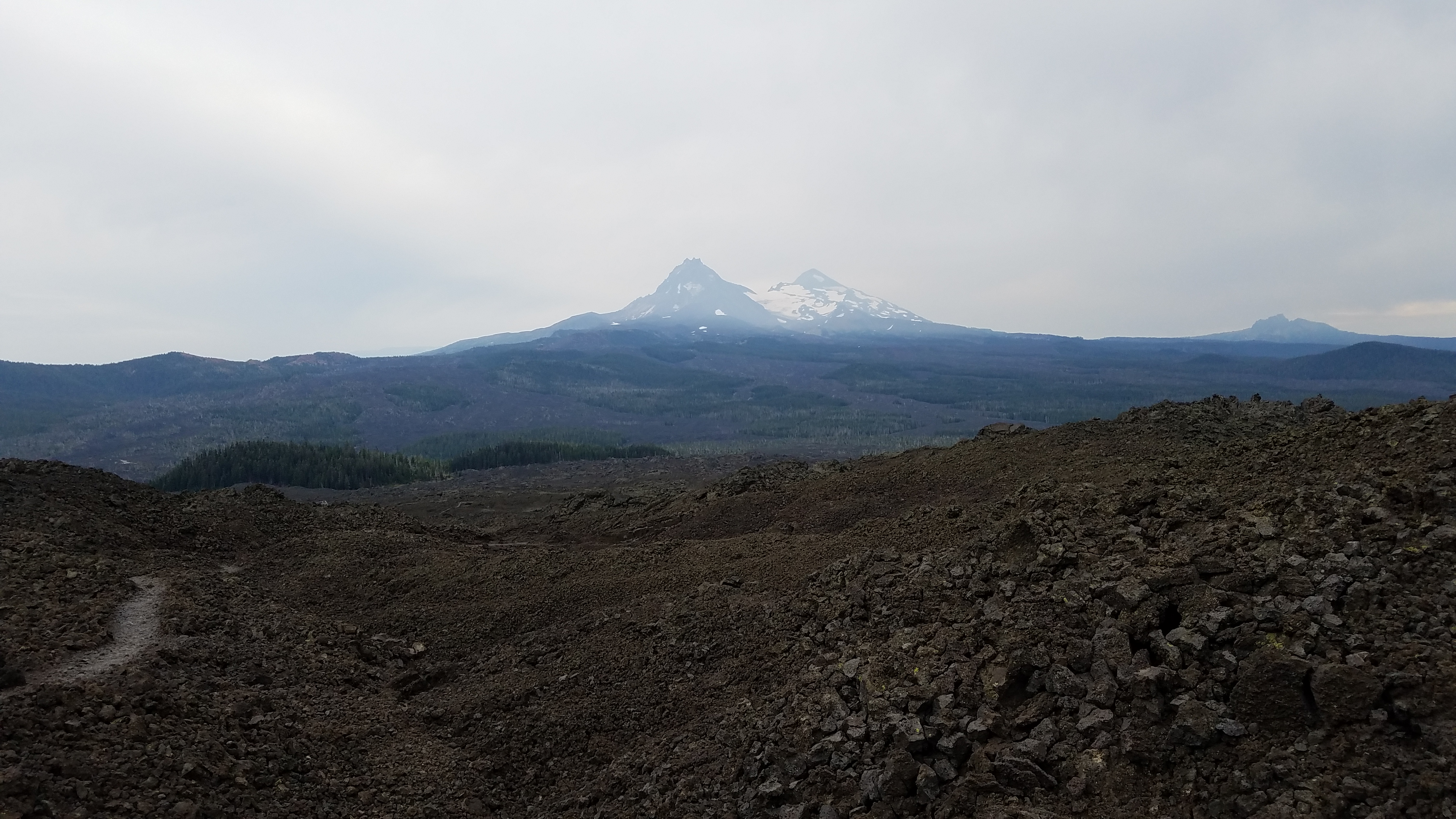 The burn recedes; the trees begin, and the walk becomes much nicer. Plus, the sun seems to have held off until I got out of the lava. Rad.