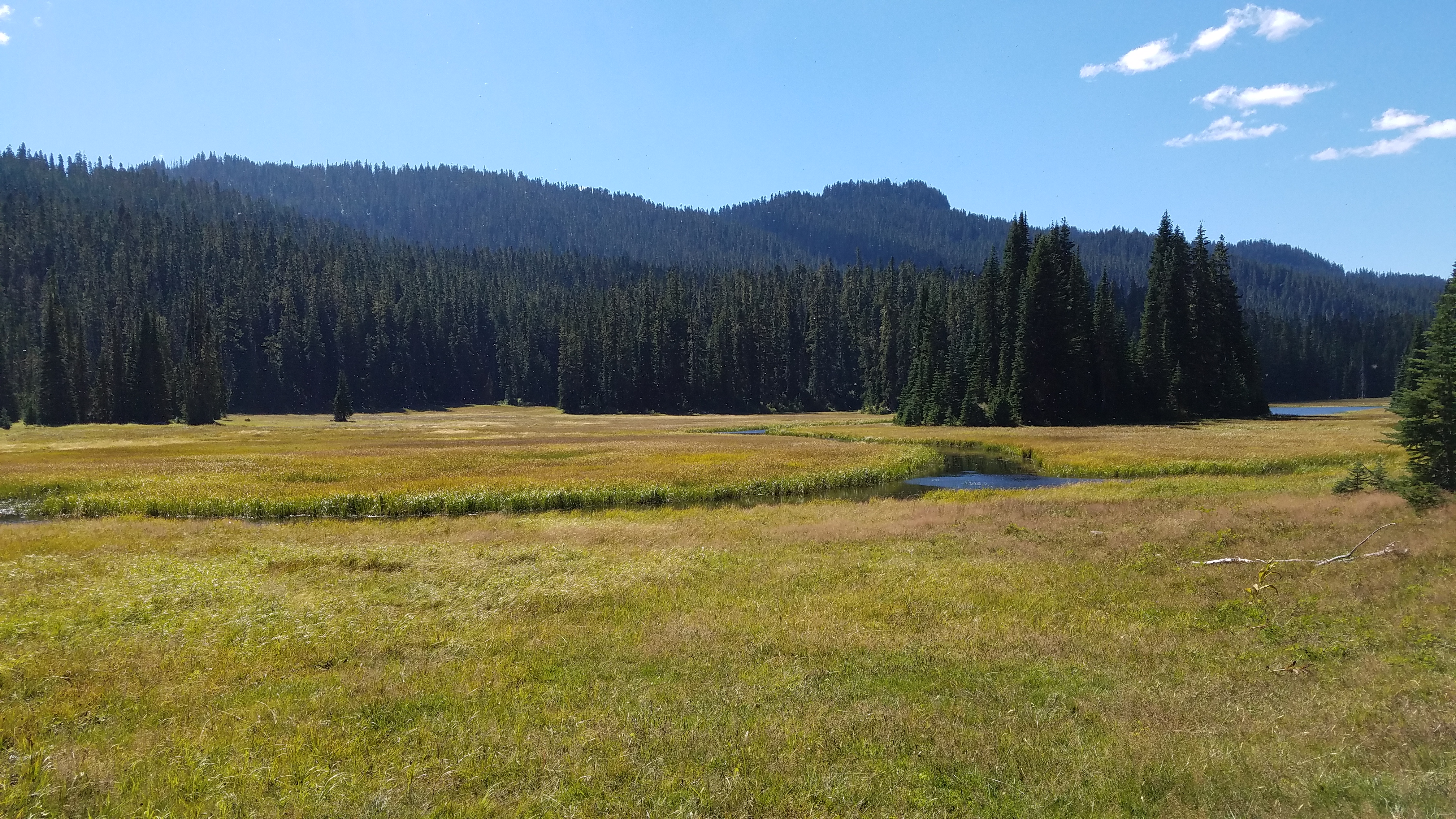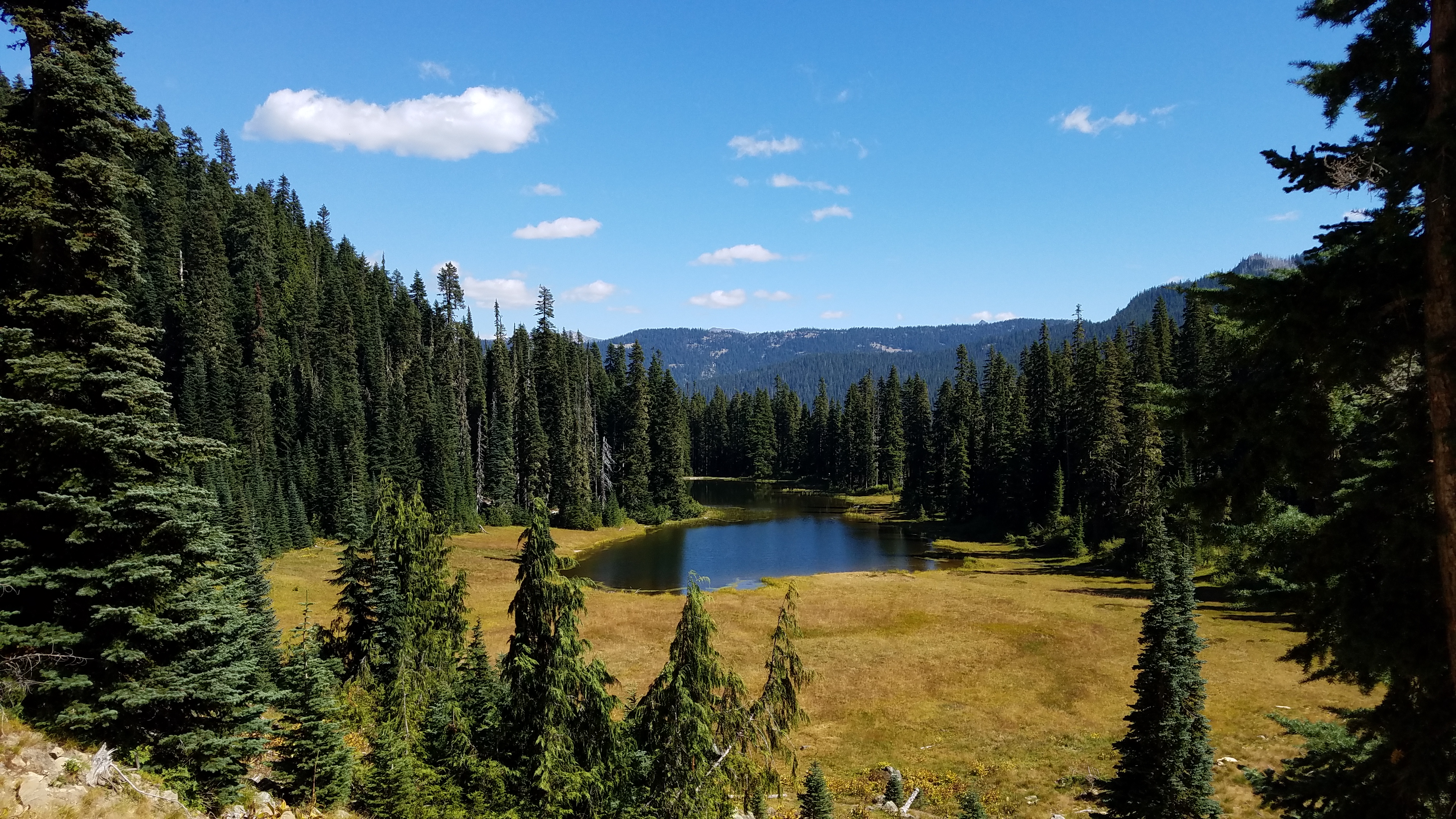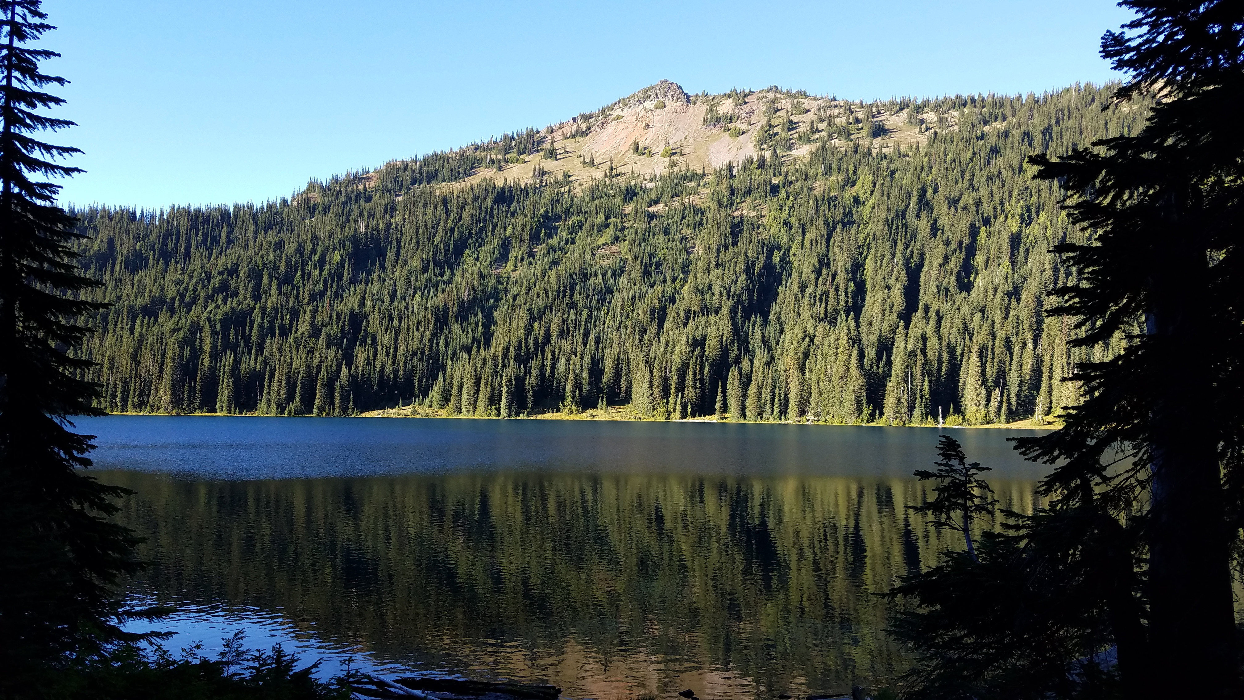 There’s lots of camping here, but it’s only 6, and I want to see how far I can make it. The climb out of the lake valley kicks my ass harder than it should – 700 feet in a little over a mile takes too long, too long. I’m not going to make it to Sheep Lake before dark tonight. As I make my way down towards the Chinook Pass trailhead, I come to terms with the fact that I’m probably going to have to sleep at the trailhead, as it’s the last time the profile looks open enough to sleep; if I went there, I’d be camping on a road, potentially alone, potentially without cover. Womp womp. It’s not optimal, but we do what we have to.