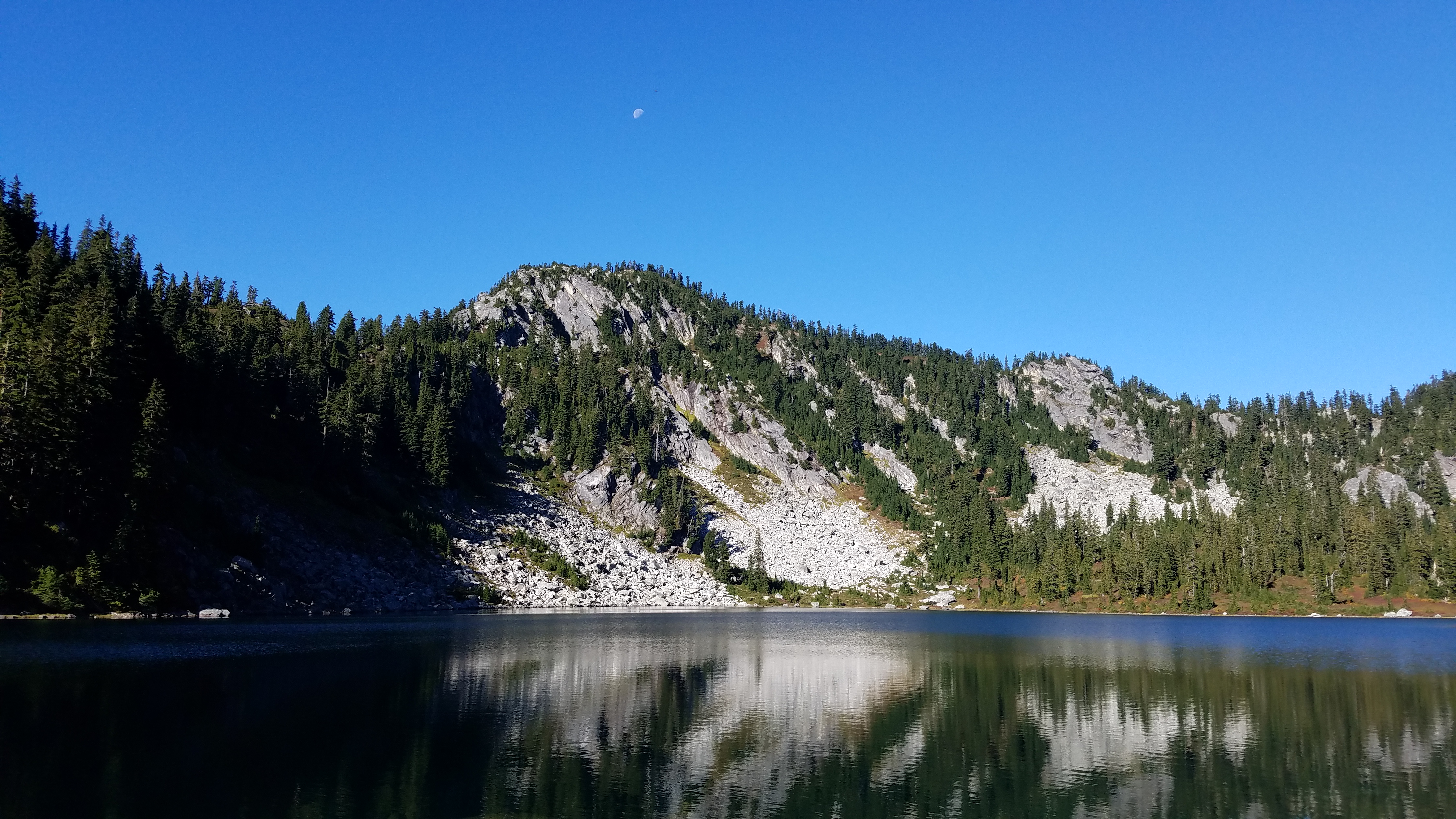The trail starts to head back up, and soon enough, I arrive at my first water stop this morning: Pear Lake.
