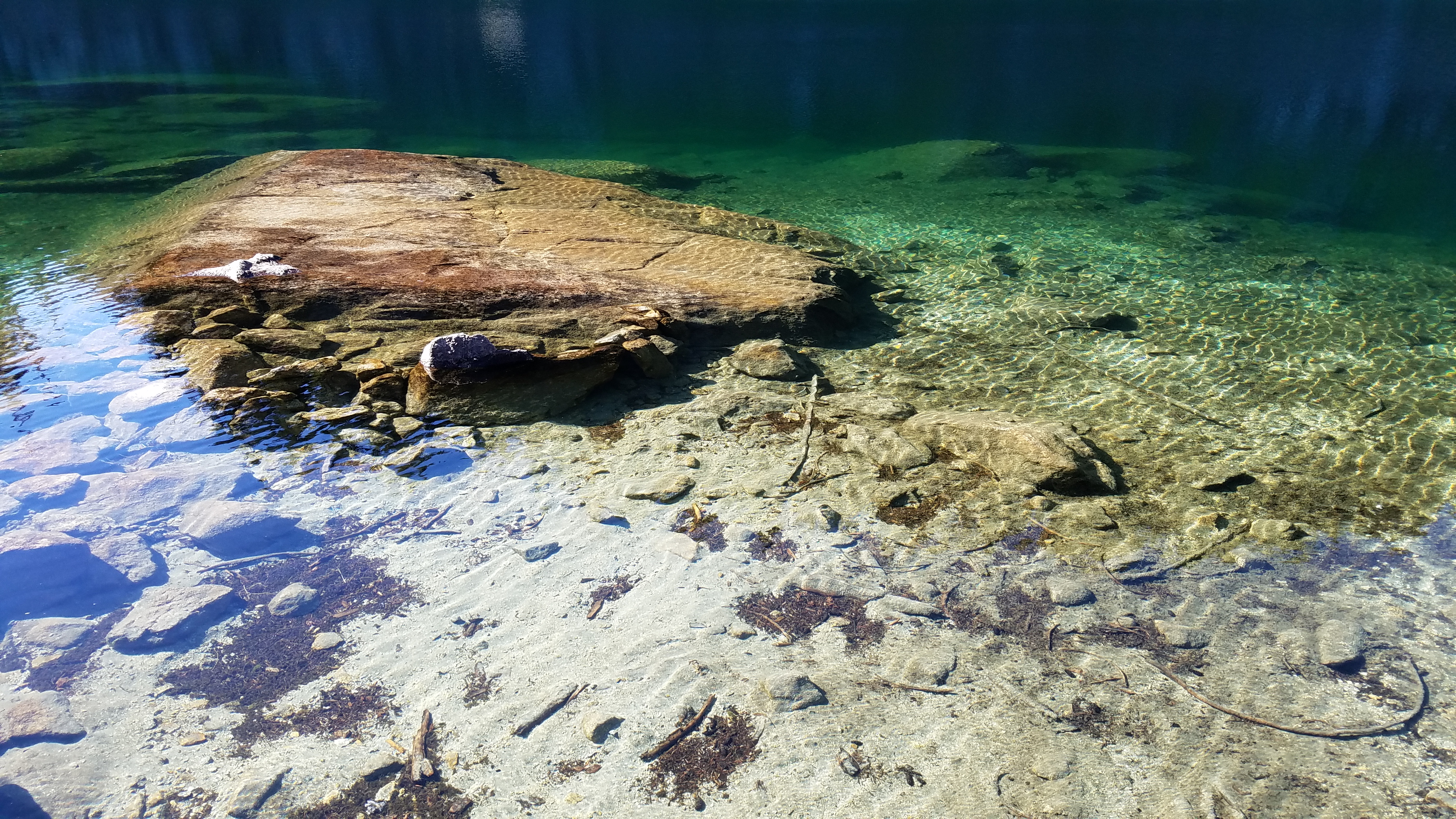 I lay my stuff out to dry, then manage to rock hop out towards the deeper part of the lake to collect. I sit on the shore, treat my water and eat, check my maps. Despite feeling good and enjoying the sunshine and having headed downhill most of the morning, after three hours, I’ve gone about 6.5 miles. It seems I’m barely making over two miles an hour today.