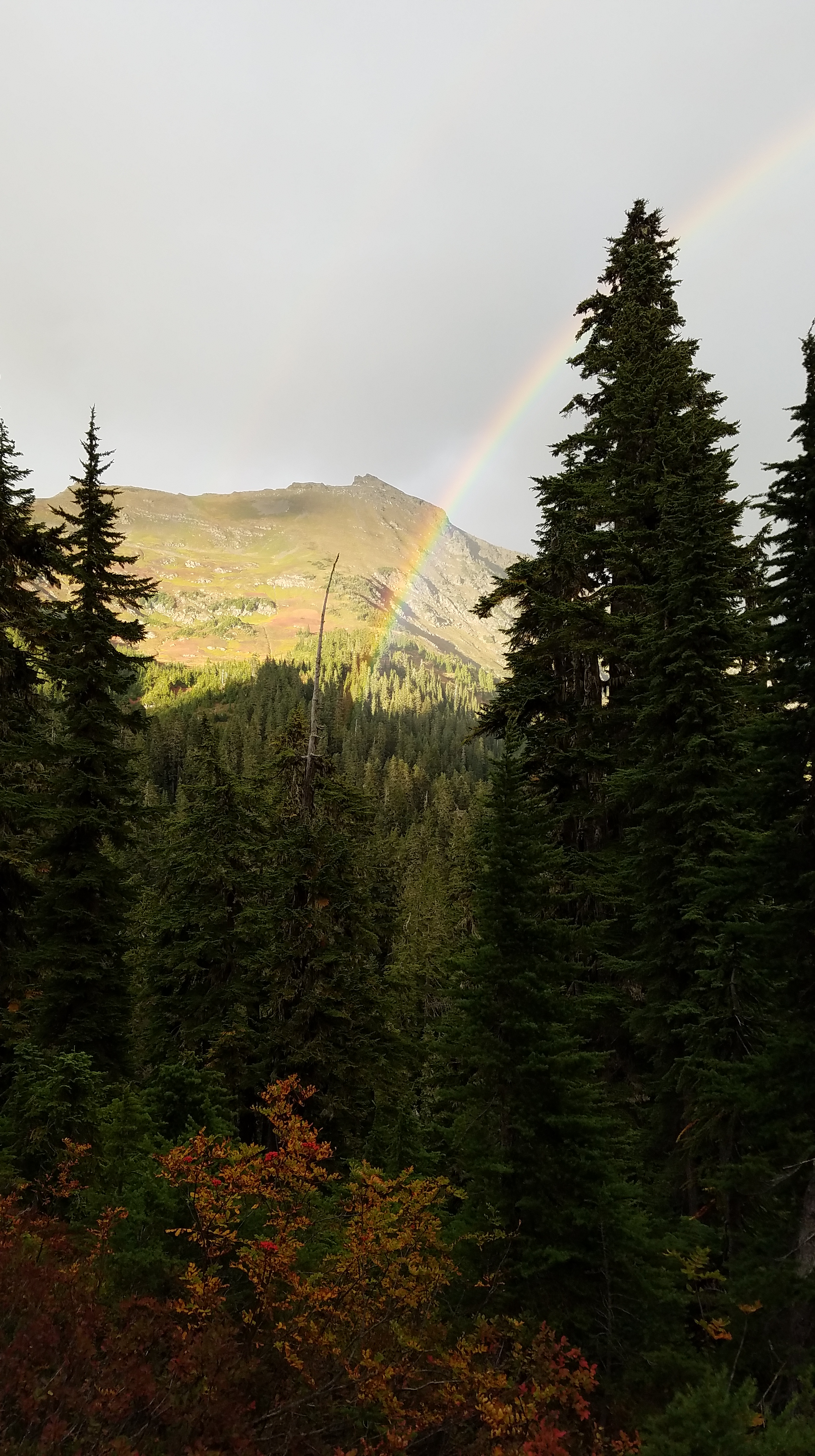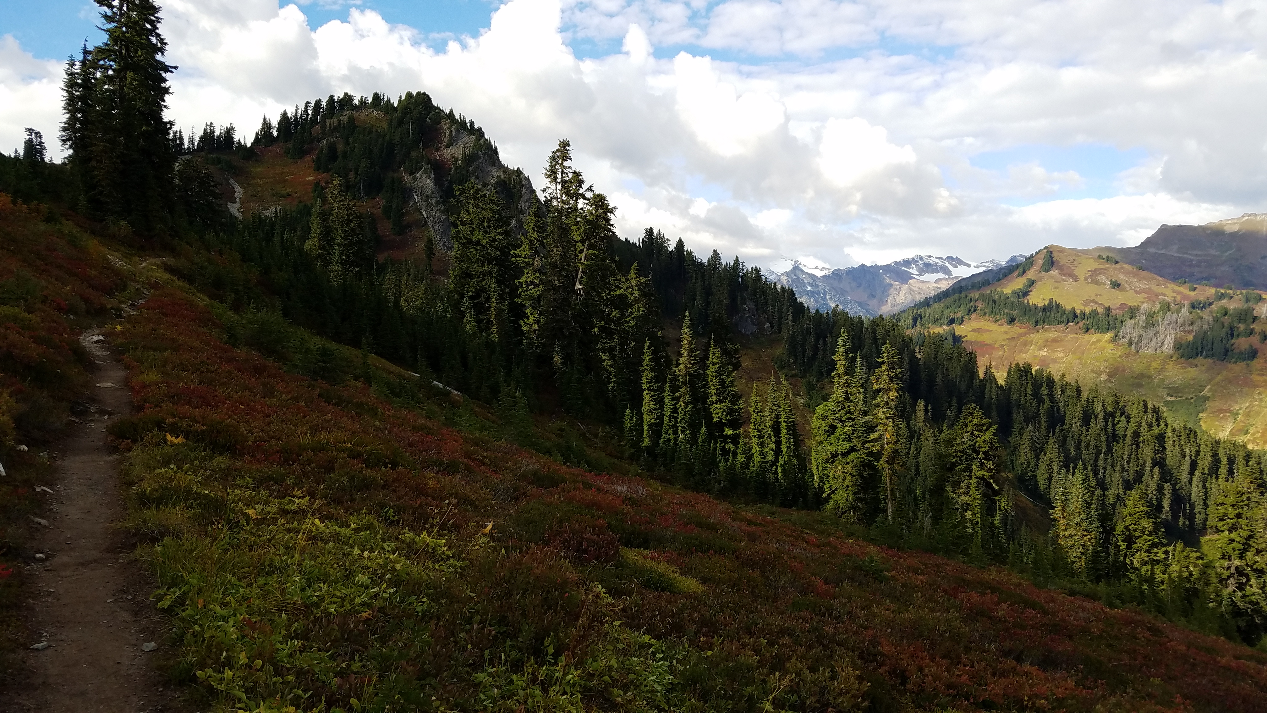 I settle back into walking obvious trail, and while shit is still hard, I try to distract myself – things could be worse. I’m thankful it’s not raining – though I do have my rain jacket on, since it started to look a little sketchy at Pass Creek – thankful that I can actually see these views – this is supposed to be one of the prettiest parts of the trail, and it’s a riot of color right now and I’m loving it – but today is just one of those mentally tough days. Doesn’t help that the horsepackers are the only people I’ve seen out and a-walking – there’s no one to even share joy with, or at least commiserate with. I’m reminded that we’re a social species, and I’m feeling that particularly keenly now.
