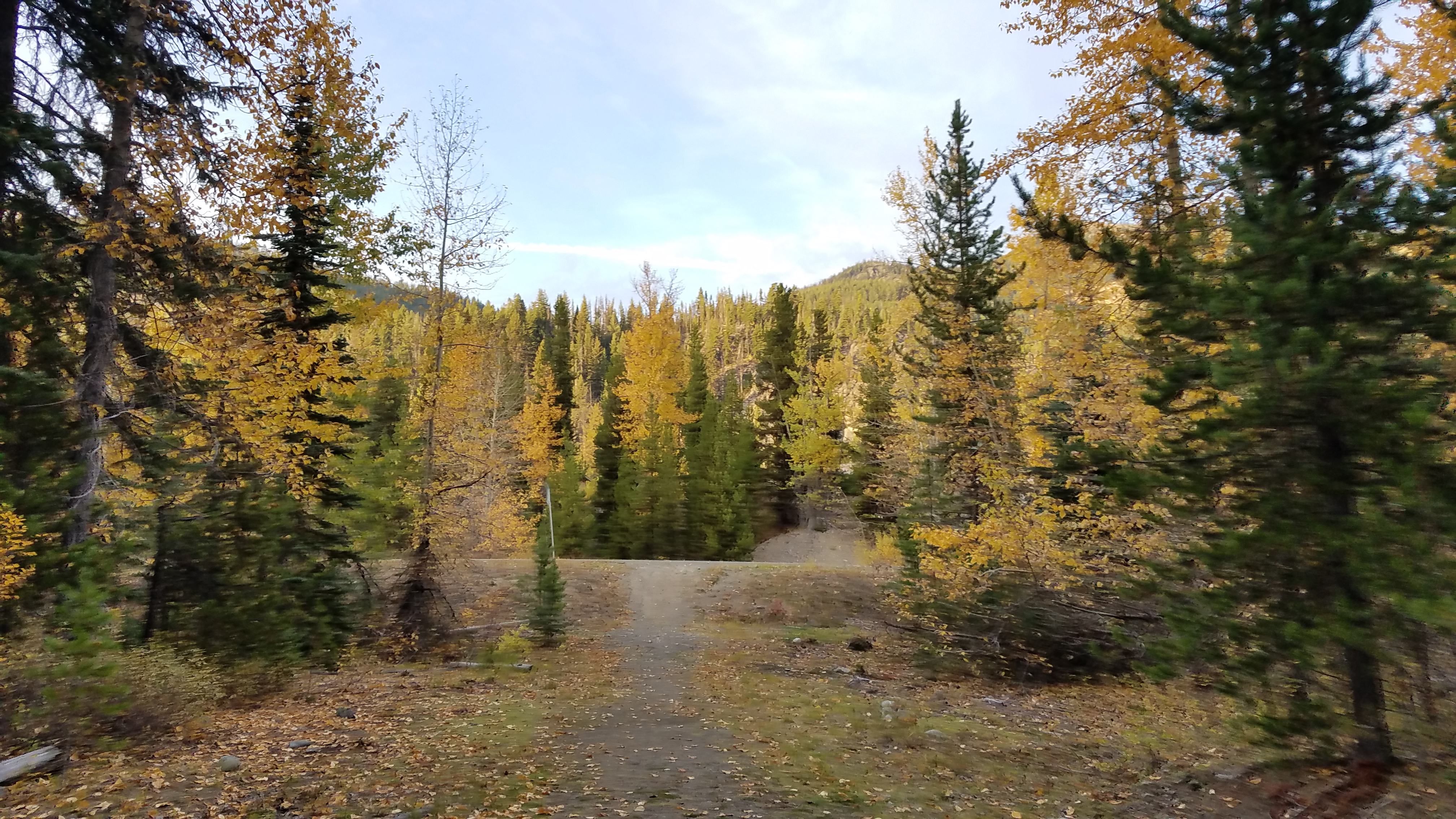 And only kinda sorta down now, mostly flat, towards a paved road that’ll lead me to the Lodge.