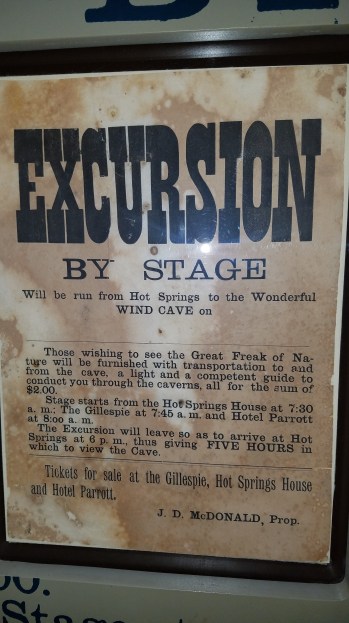 We wish we could linger longer, but the fragility of the environment means they won’t leave us casuals in the cave alone by ourselves. Le sigh. We spend some time in the museum, reading the interpretive signs, like the one that lauded the two white “discoverers” of the cave when it’s been known to the local native peoples since time immemorial3; looking over the objects on display, like a flyer advertising the “Freak of Nature” cave, a sacred place to the Lakȟóta people, to tourists; watching the movie on the development of the park, that discussed the extinction of the buffalo as the fault of the American Pioneers as opposed to the policy of the United States Army.
