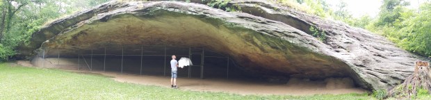 We’re lazy in the morning, writing and reading and enjoying the hours as they develop, but eventually, we have to start the long trip towards Illinois. Podcasts and Spotify keep us company as we make our way to Graham’s Cave State Park in Missouri, which has apparently been abandoned to the spiders. The cave’s cool, though: