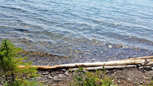 Campgrounds here seem to grow organically off the trail, with shelters – what luxury! – closer than you’d think they’d be, and tent sites a little further off. For their proximity, they seem private, and while we glimpse gear on tables, perhaps foolishly left out, we don’t see many people poking their heads out. And then, the campsite is past, and it’s a shoreside trail that leads us merrily along into the backcountry.