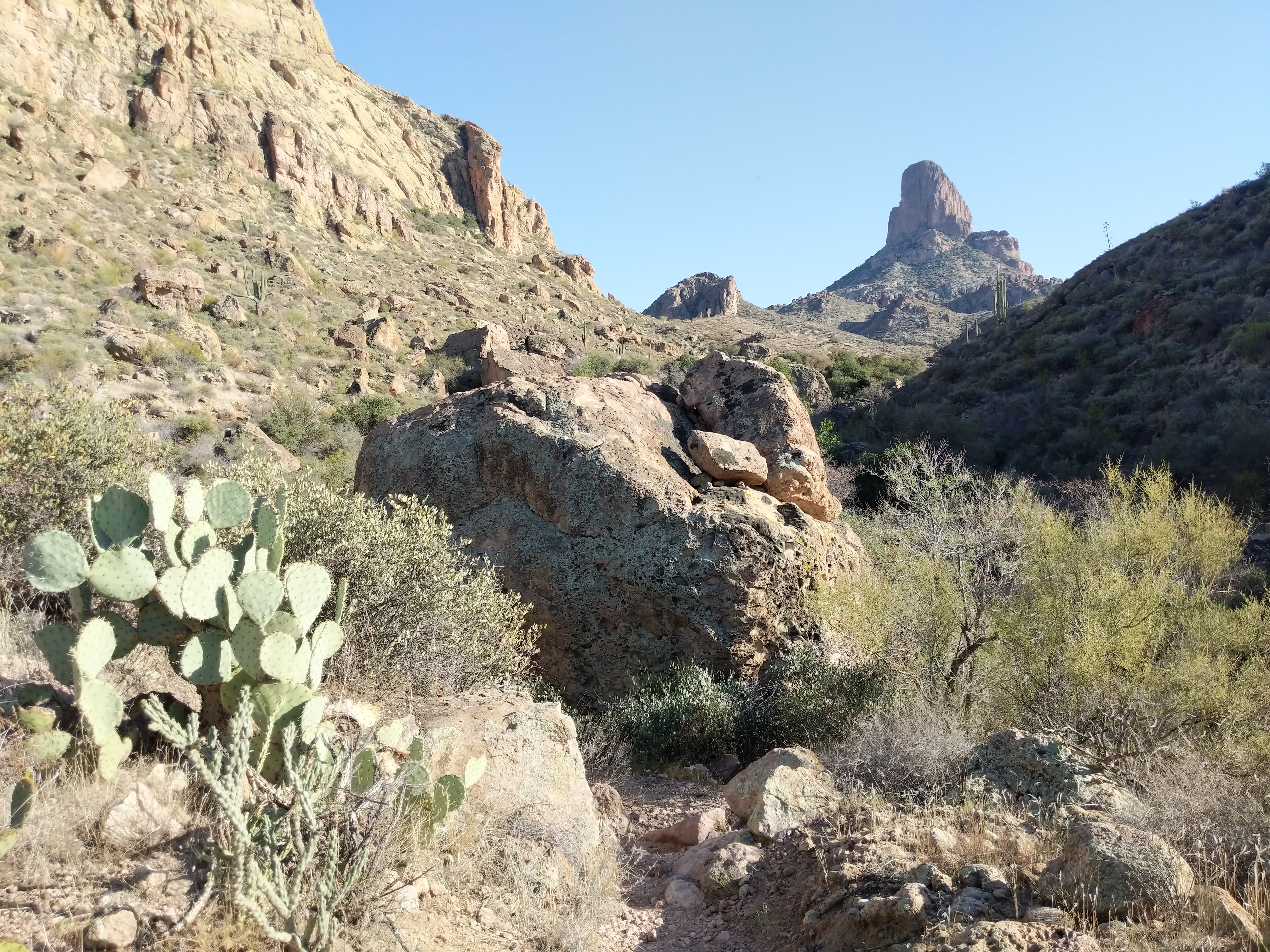 Two Tonto National Forest volunteers are standing at the trailhead watching us, make comments that we look prepared – one even knows the GET when we say we’re headed to Albuquerque. They ask us to stay safe, as it’s supposed to be the hottest day of the year today. Cooooool1.